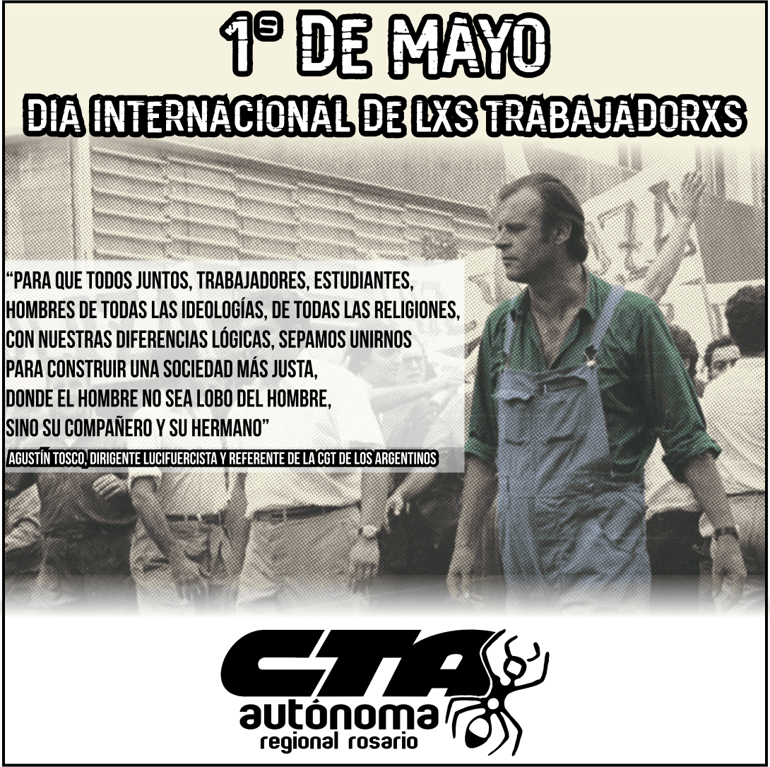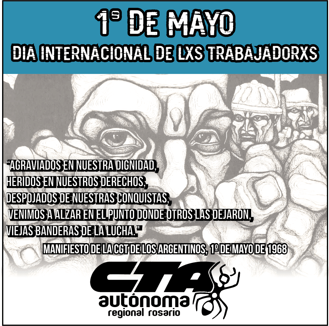 Por CTAA Rosario* | Este Día Internacional de Lxs Trabajadorxs nos encuentra en un contexto de crisis sanitaria, social y económica. Por primera vez en la historia, les trabajadores no estaremos en las calles, pero sí en las primeras líneas de atención de las necesidades del pueblo y desde nuestras organizaciones con la firmeza para preparar la fuerza social necesaria para confrontar cualquier ajuste que quieran imponernos.