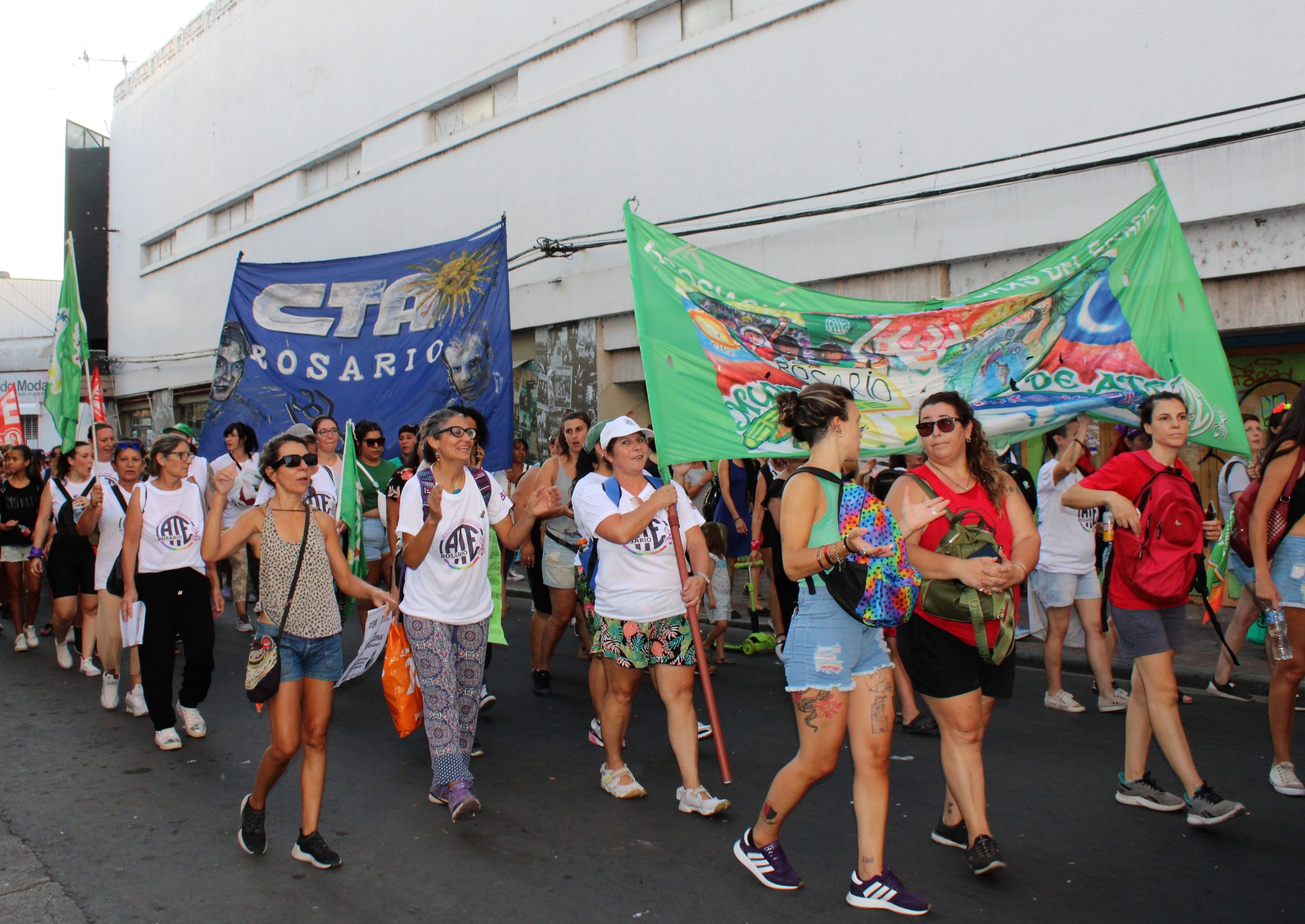 En el Día Internacional de la Mujer y Disidencias, la CTA Autónoma Rosario fue parte de la multitud que, nuevamente y pese a la extrema ola de calor, colmó las calles por un mundo sin violencias. Se realizó un nuevo paro internacional con la consigna ‘si movemos el mundo, podemos pararlo’.