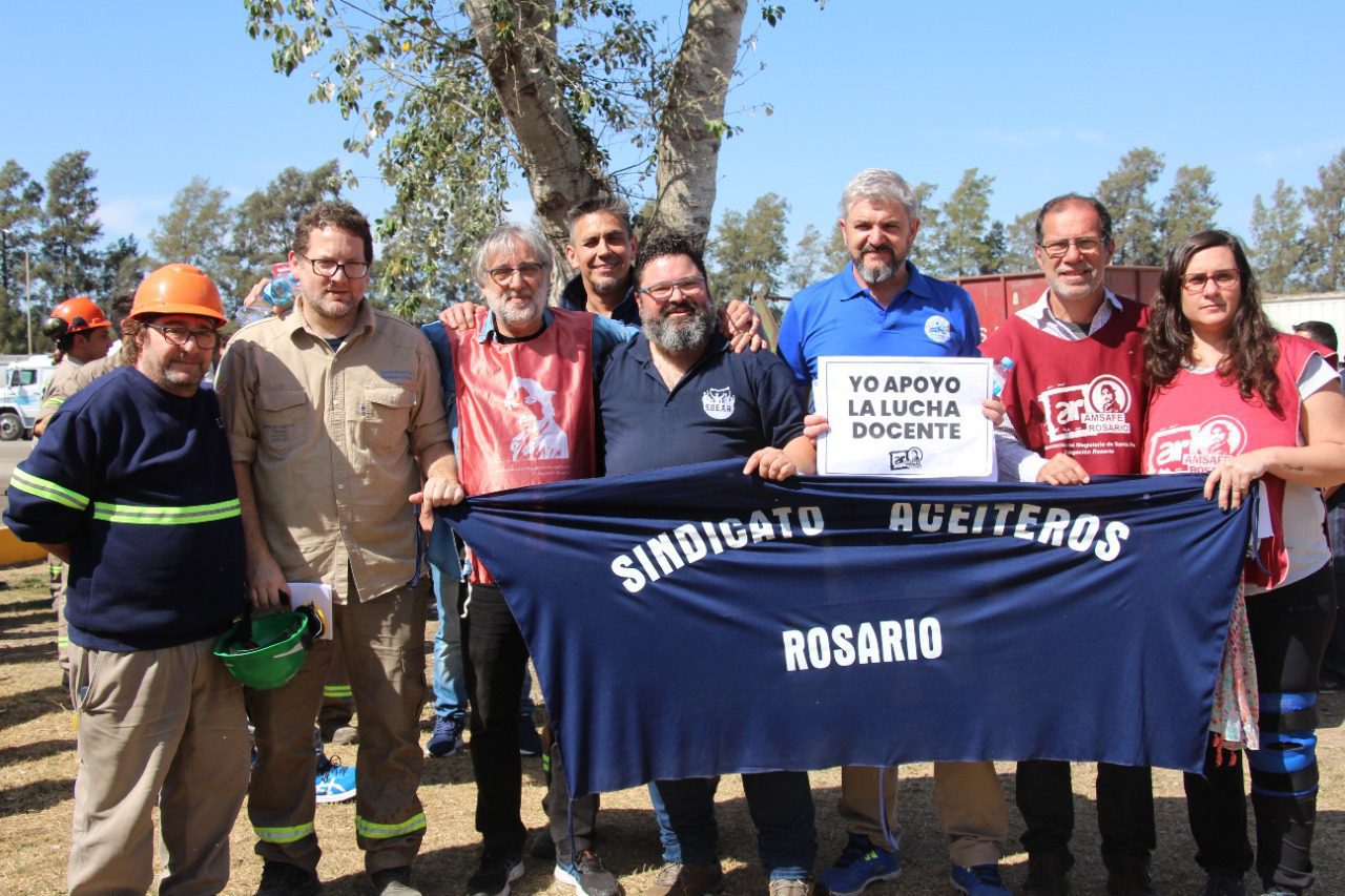 Pero, en la jornada del martes 27 de septiembre se desarrollaron quizás las acciones más históricas y emblemáticas en clave de solidaridad de clase: tres asambleas en las principales plantas aceiteras del SOEAR (Sindicato de Aceiterxs). Asi trabajadorxs de la educación, entre ellxs el Secretario Adjunto de la CTAA Rosario, Gustavo Terés, compartieron espacios de diálogo con obrerxs de Dreyfus General Lagos, Cargill VGG y Molinos.