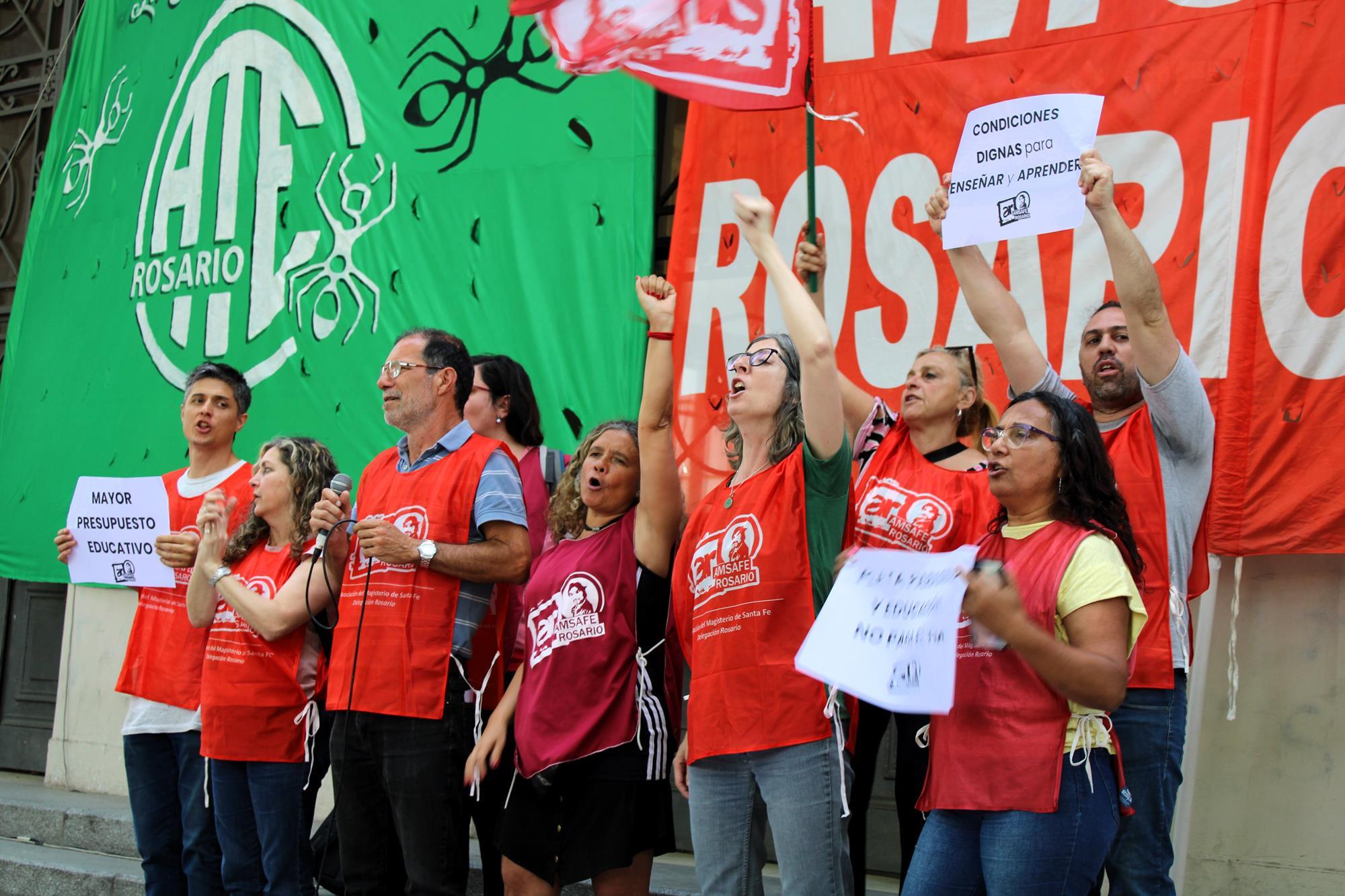 “El cese de actividades en las escuelas del departamento de Rosario es masivo. Queremos que el gobierno provincial, que viene negando esta realidad, escuche que el reclamo de que el acuerdo firmado en el mes de agosto ya no sirve. La inflación nos está ganando por goleada: a septiembre ya superó el 100%, ese es el total del aumento previsto hasta el mes de diciembre. Nosotros en enero cobraríamos lo que es hoy la inflación del mes de septiembre. Que estamos hablando de valores que todos los meses rondan el 10%”, explicó el Secretario General de Amsafe Rosario, Juan Pablo Casiello.