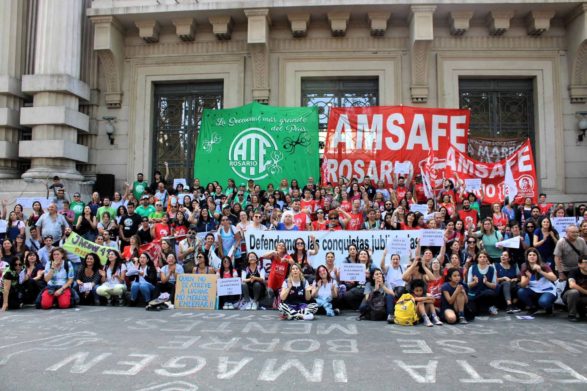 “Los gremios a nivel provincial se callan la boca y, en los hechos, acuerdan con el gobierno: no tenemos presiones ni de AMSAFE Provincial, ni de otros gremios provinciales sobre este tema. Evidentemente funciona un acuerdo que lo que hace es perjudicar al conjunto de la docencia y al conjunto de los trabajadores y las trabajadoras de la provincia de Santa Fe”, analizó Casiello.