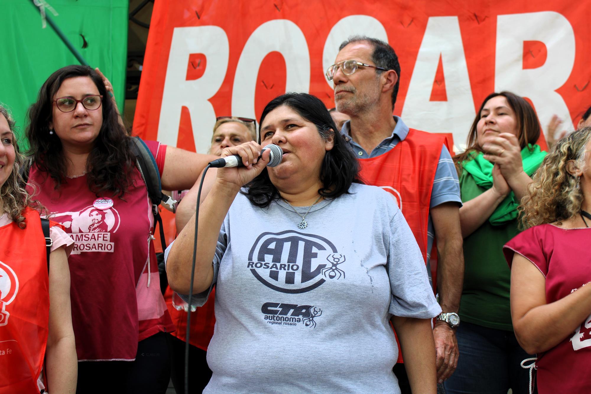 ‘’Hoy con estos sueldos estamos bajo la línea de pobreza y tenemos compañeros en la indigencia. El dólar a 1030 pesos habla que seguimos perdiendo. El 22 de octubre hay que votar con conciencia porque hay candidatos que generan esta corrida diciendo que hay que sacar los pesos de los bancos y comprar dólares”, expresó la dirigenta de CTAA y ATE Rosario.