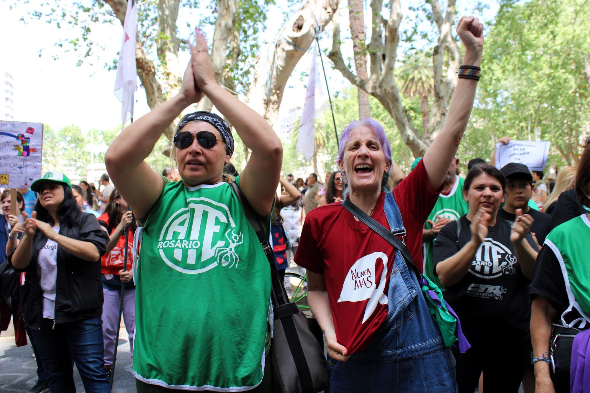 “A las compañeras que marchan al Encuentro Plurinacional de Mujeres y Disidencias les decimos que lo hagan con fuerzas. A los negacionistas, les decimos que son 30 mil los compañeros y compañeras desaparecidas. Al gobernador entrante le avisamos que nos encontrará en las calles y no vamos a dar un paso atrás. Ya usted, Gobernador Omar Perotti, le avisamos que tiene que seguir gestionando, no abandone sus responsabilidades, porque lo que hace es legalizar la degradación de nuestro salario con la complicidad de nuestros paritarios”, concluyó Almirón.