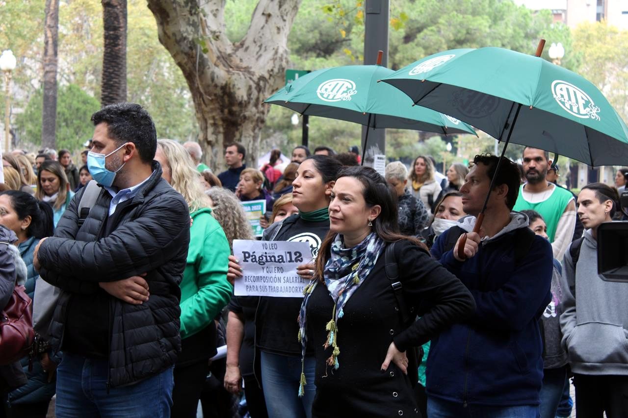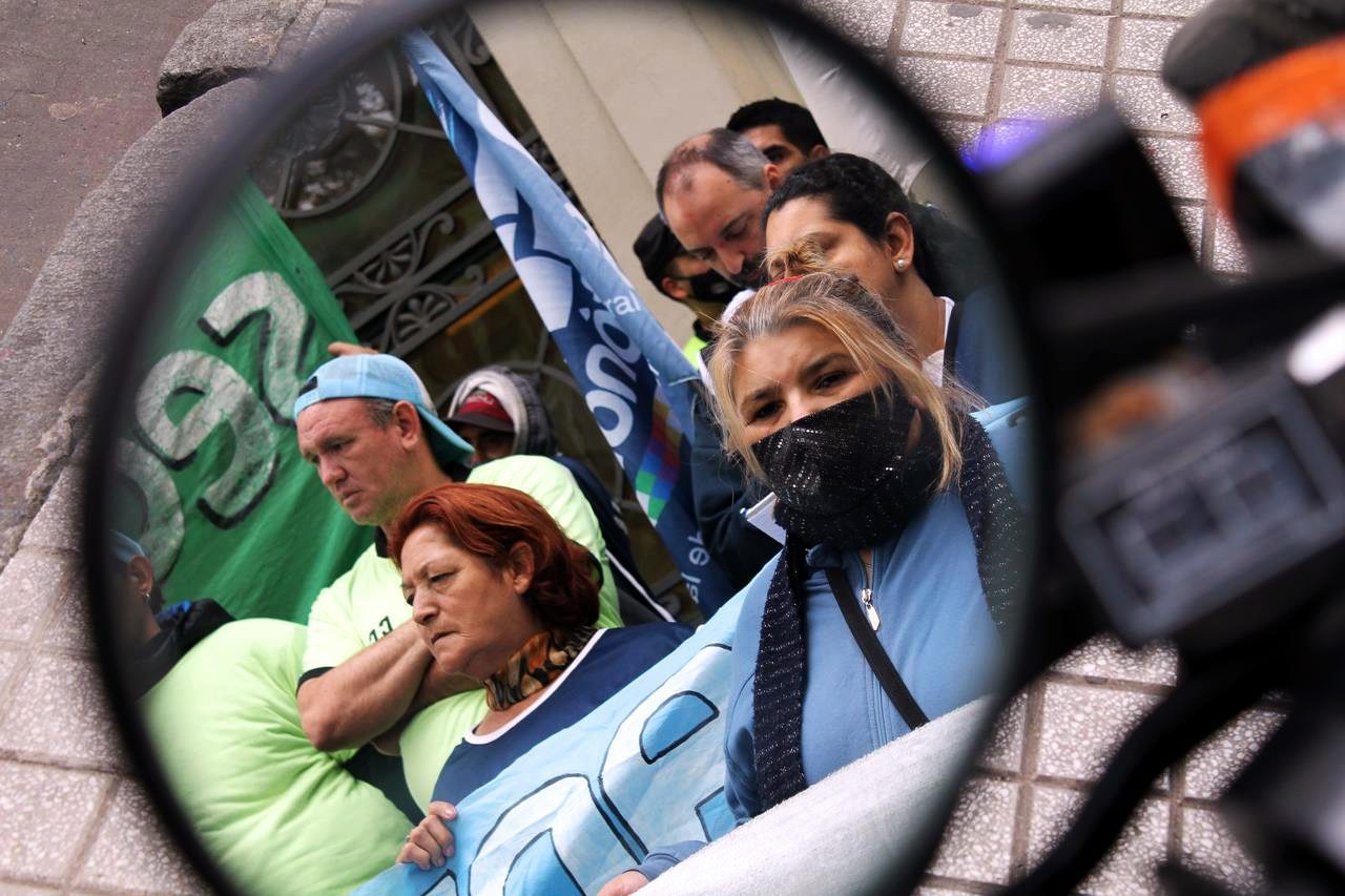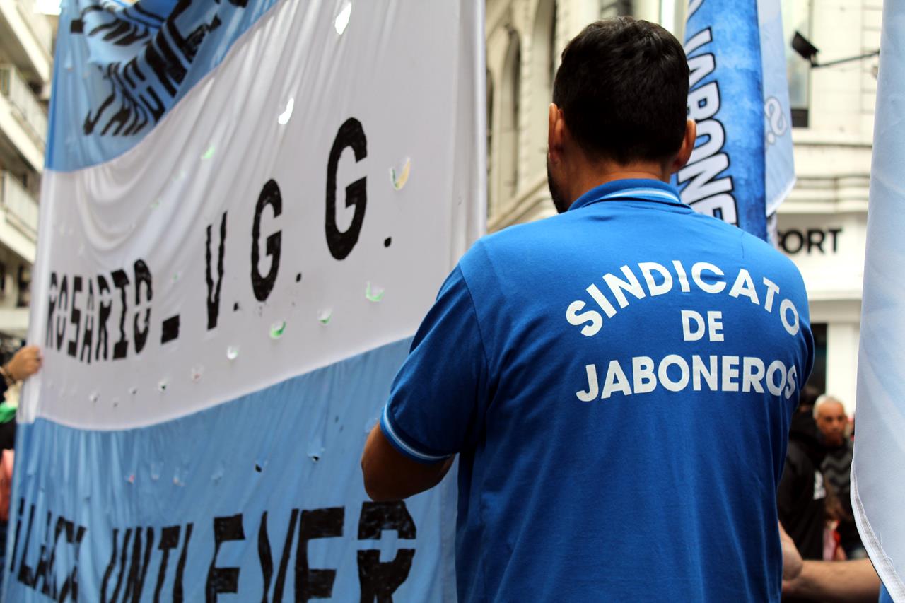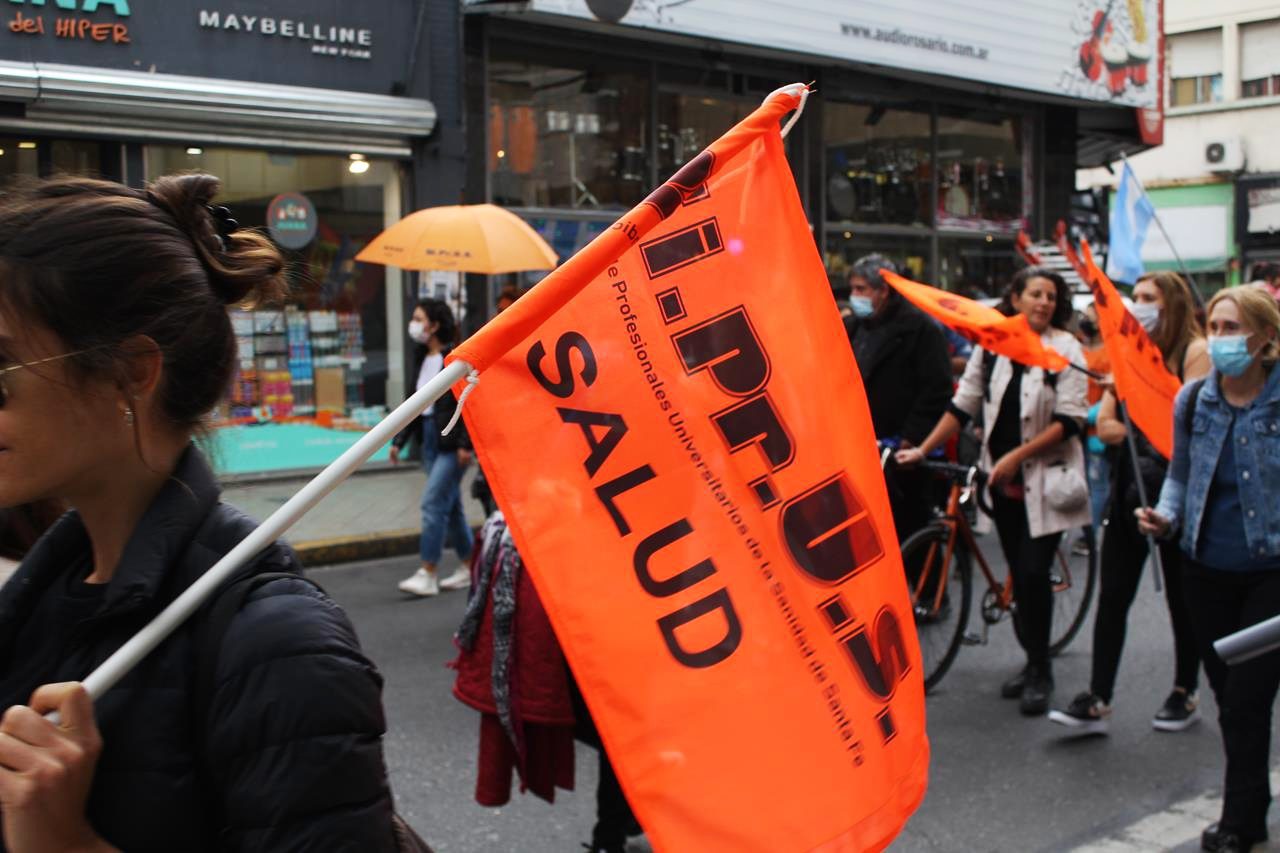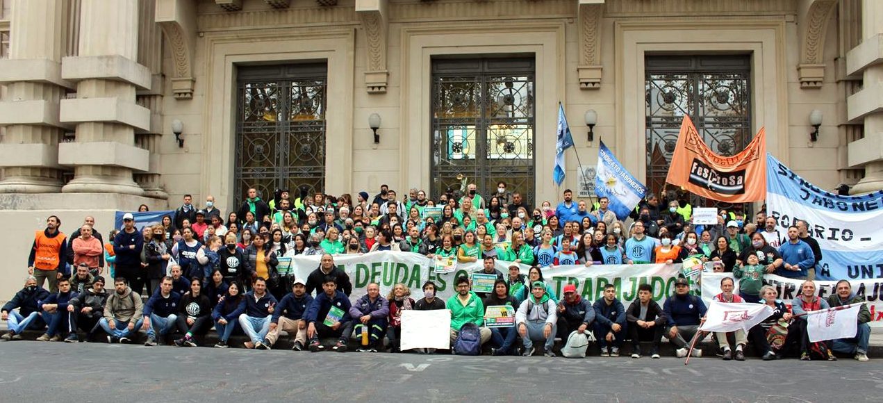 En una mañana nublada en Rosario la esquina del Ministerio de Trabajo se fue poblando de personas. Trapos, pecheras de diversos colores. Bombos y trompetas. Se veían inscripciones de ATE Rosario, Amsafe Rosario, SIPRUS –Fesprosa, COAD, Jaboneros, Aceiteros, la CTAA, la FENAT y la CCC, entre otros. Pero el reclamo era uno: ‘la deuda es con el pueblo, fuera FMI de Argentina’.