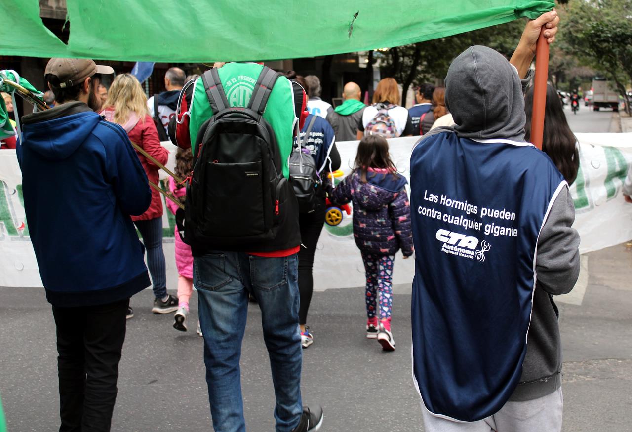 En el marco de la Jornada Nacional de Lucha, la CTA Autónoma Rosario marchó de la mano de cientos de trabajadorxs. De esos que, con o sin empleo, están de todos modos empobrecidxs. El rechazo a la injerencia del Fondo Monetario Internacional en la política del país fue unánime: sus planes económicos profundizan la desigualdad y la miseria. Se exigió reapertura de paritarias y trabajo digno.