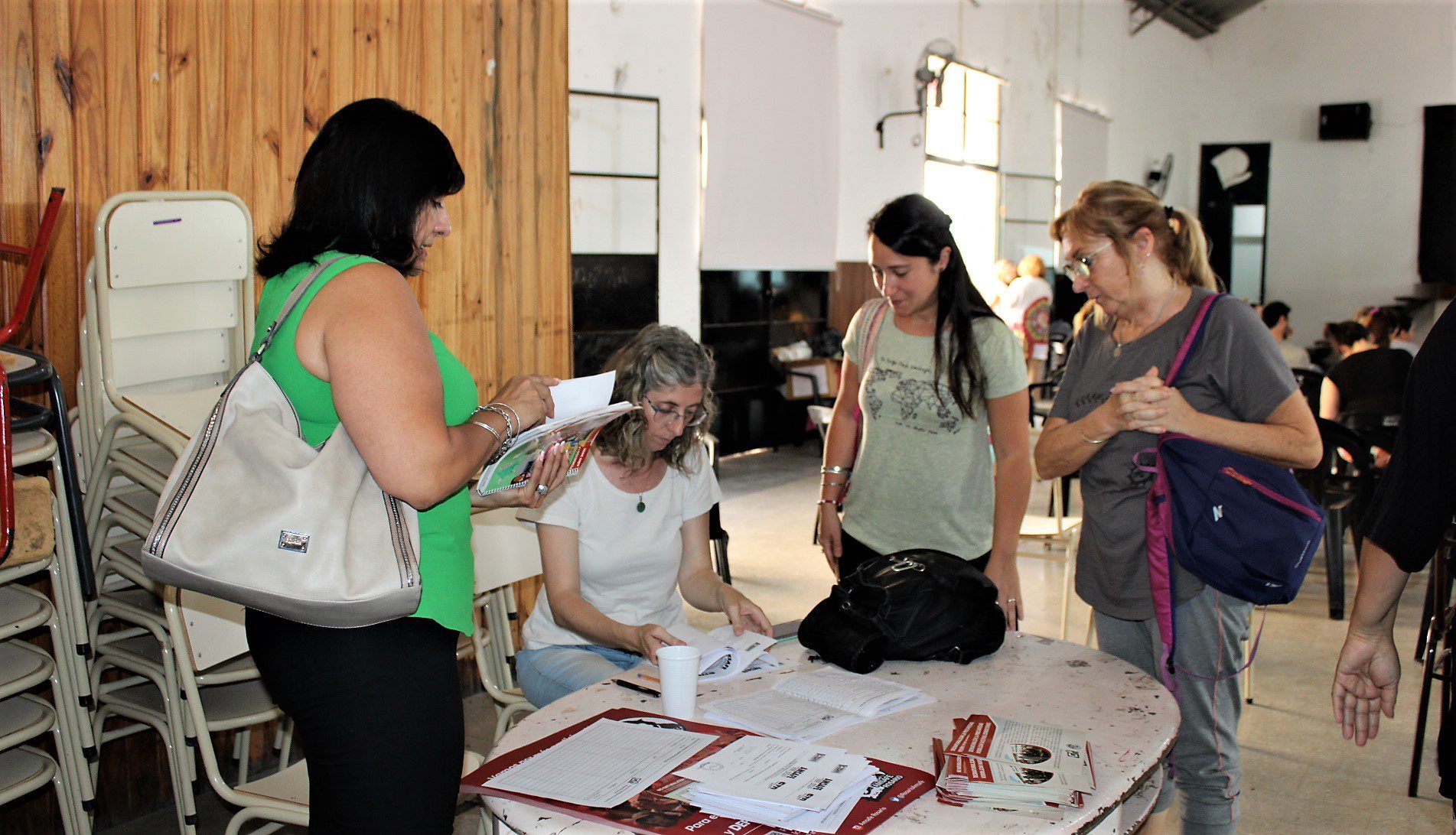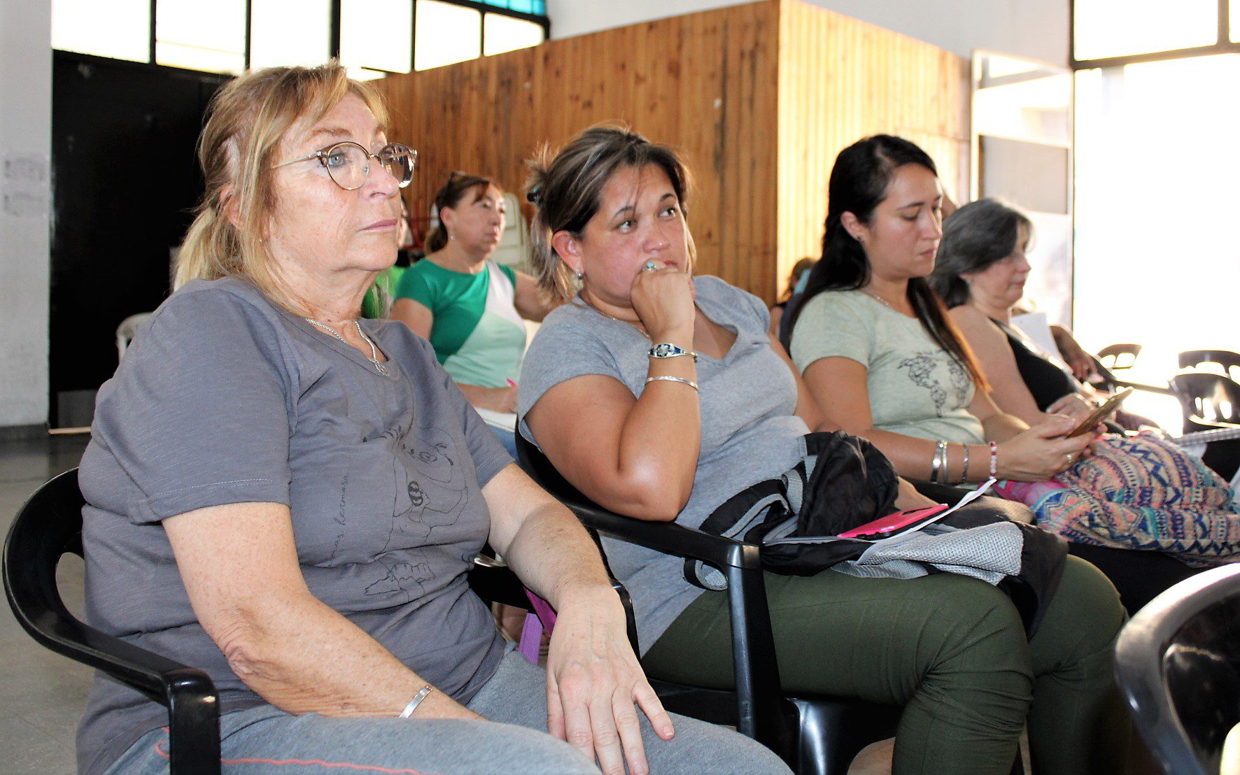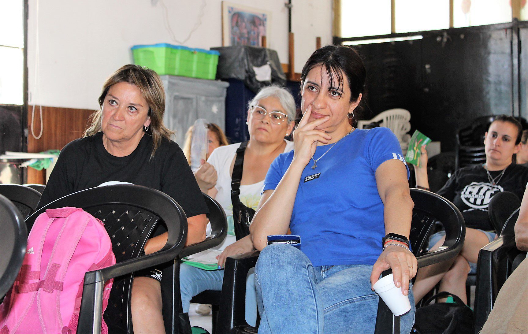Docentes , asistentes escolares, gastronómicos, trabajadorxs del aáre de la niñez, municipales, El Hormiguero – CTAA, se sumaron en la Escuela Almafuerte a la disertación del coordinador de trabajo social de base y docente jubilado, Oscar Lupori, y de la politóloga Lorena Burgos, de la Secretaría Nacional de Niñez, Adolescencia y Familia.