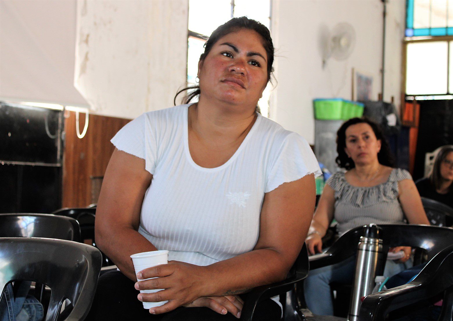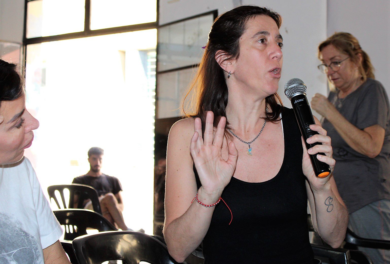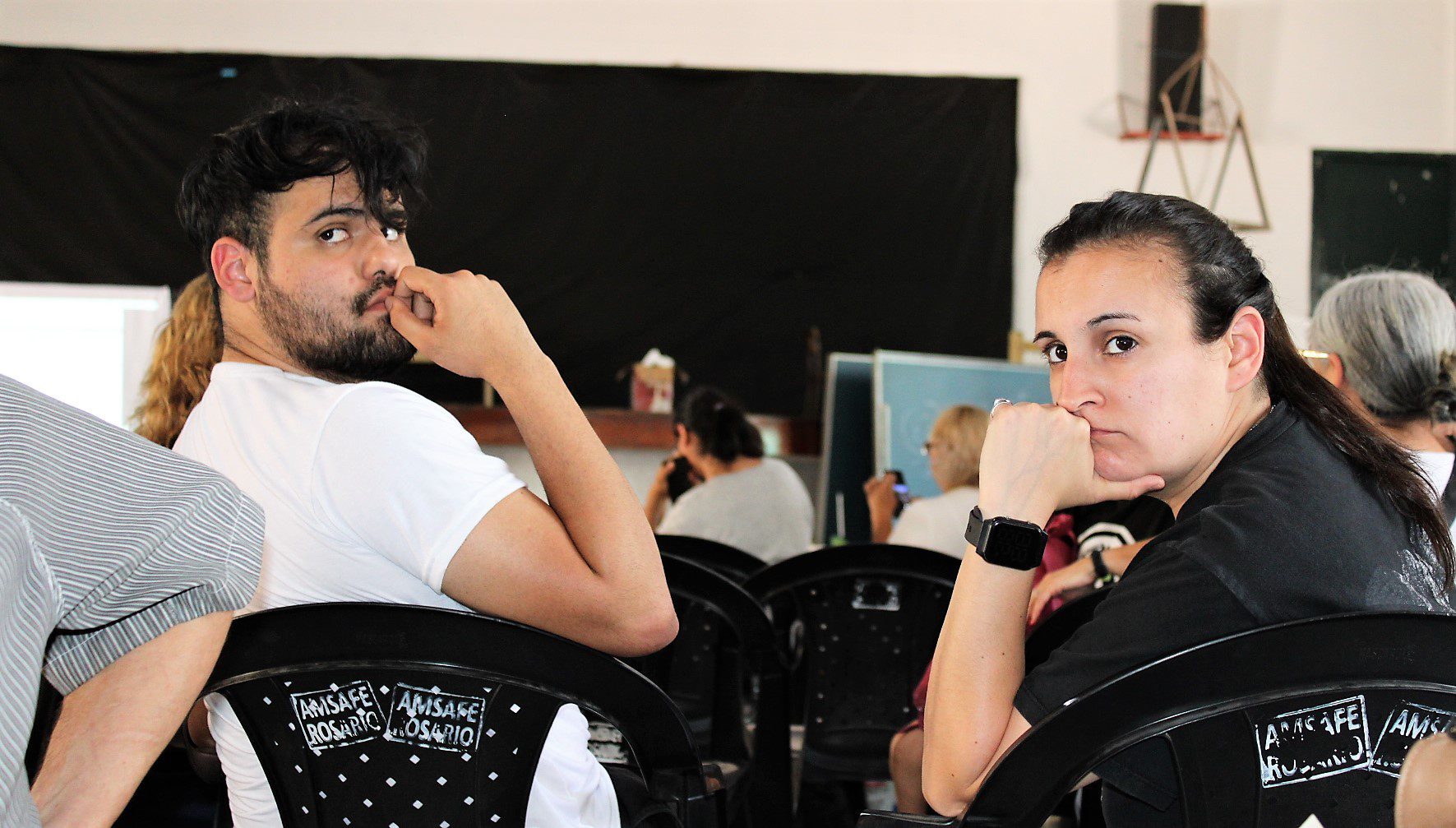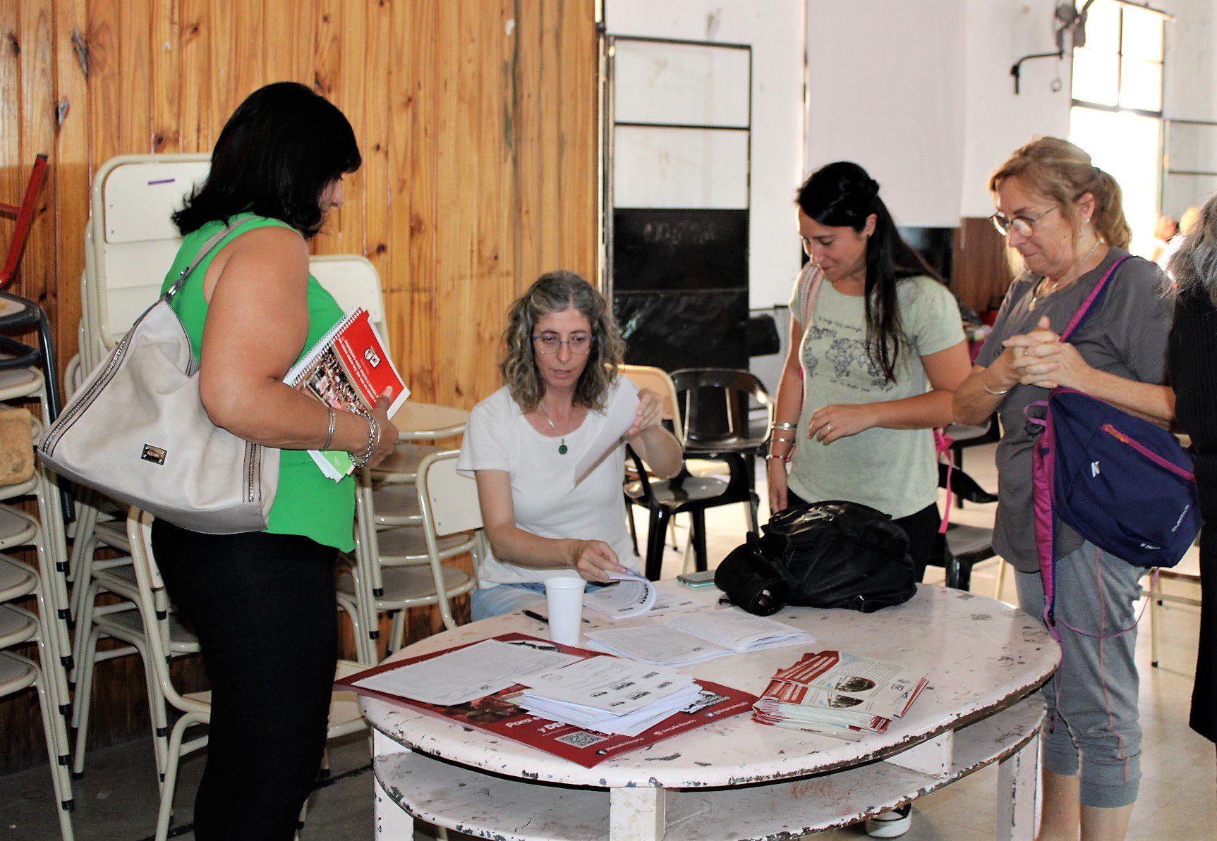 Docentes , asistentes escolares, gastronómicos, trabajadorxs del aáre de la niñez, municipales, El Hormiguero – CTAA, se sumaron en la Escuela Almafuerte a la disertación del coordinador de trabajo social de base y docente jubilado, Oscar Lupori, y de la politóloga Lorena Burgos, de la Secretaría Nacional de Niñez, Adolescencia y Familia.
