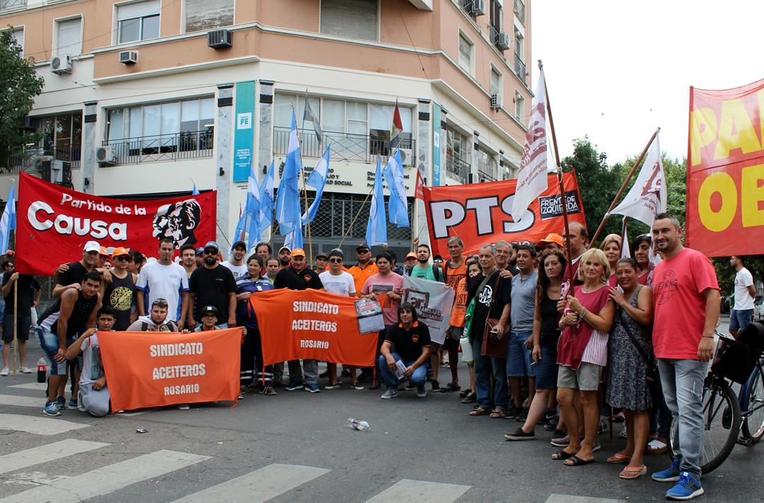 Esta Central estuvo desde el primer momento poniéndole el cuerpo a la solidaridad con los compañeros de Villa Gobernador Gálvez y Punta Alvear, expresando en la práctica su convicción que al ajuste se lo vence en unidad y en la lucha. Hoy miércoles al mediodía, la empresa firmó una conciliación que violó dos horas más tarde, impidiendo el ingreso de los despedidos. Esto expone el espíritu de Cargill al empezar semanas anteriores a ‘ofrecer retiros voluntarios’. Pese al compromiso asumido con el SOEAR y Empleados de Comercio, envió telegramas de despido a quienes no suscribieron y ahora incumple la disposición ministerial.