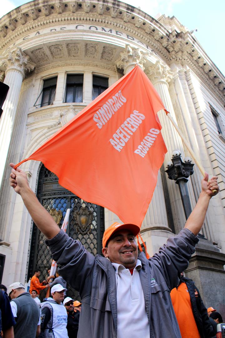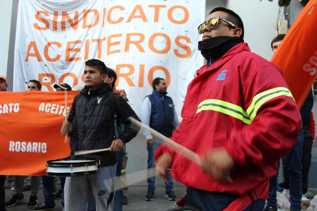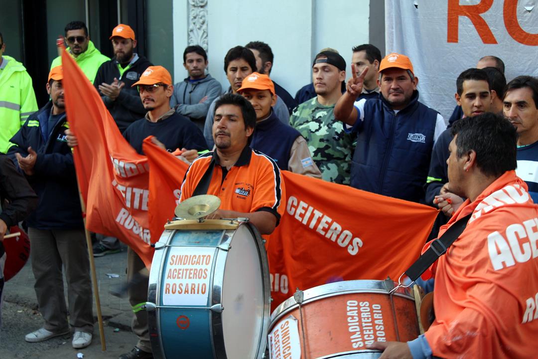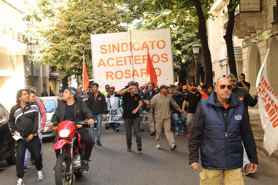 “Vamos a hacer sentir el ruido aceitoso por las calles de Rosario, para que se vea que es una pelea justa y que necesitamos que nos acompañen”, dijo bien temprano a la mañana el delegado de Cargill Villa Gobernador Gálvez y Secretario de Salud Laboral de la Federación Aceitera, Marco Pozzi. Y se cumplió la promesa. Desde Córdoba 2454, donde funciona la sede local administrativa de la multinacional que más facturó en el sector el año pasado, una ruidosa marcha recorrió hasta la esquina de Corrientes y Córdoba.