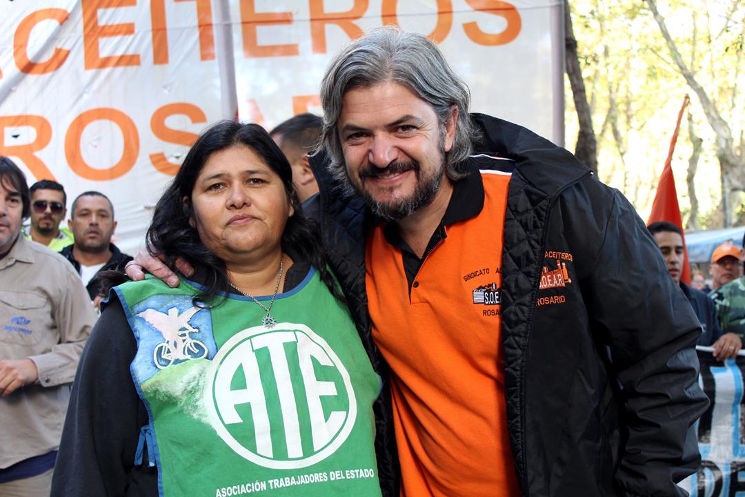 En la mítica esquina que vio nacer el Rosariazo, una nutrida columna participó del acto multisectorial atravesado por la emoción, la bronca y la esperanza de triunfo. El Secretario Adjunto de la CTAA Rosario y dirigente de ATE Rosario, Raúl Daz expresó: “hermanos de clase, seguimos dando muestras de que hay otro rumbo para la clase trabajadora si lucha y enfrenta a este gobierno antiobrero y antipopular que aplica reformas retrógradas. Este gobierno es garante de estas multinacionales y quiere llevar adelante las reformas y terminar con el convenio colectivo en el Estado”. Destacó además la solidaridad desplegada por Aceiteros en las luchas de los estatales.