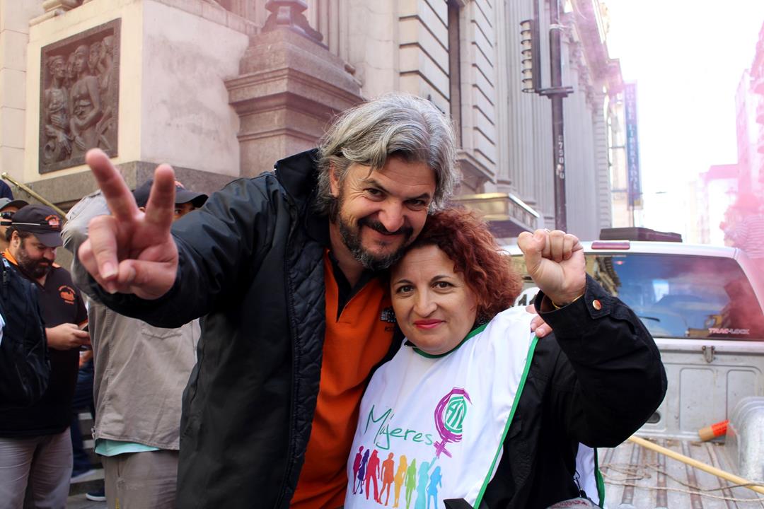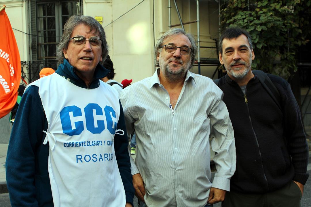 El Secretario General de la CTAA Rosario y Amsafe local, Gustavo Terés, afirmó estar “orgulloso como siempre de compartir con ustedes, de poder construir la unidad desde la lucha, la calle, el lugar natural de los trabajadores. De compartir con Empleados de Comercio, de ATE, de Siprus, de la Corriente Clasista y las fuerzas de izquierda. Todo el movimiento popular se tiene que convocar para defender lo más importante que tiene el trabajador: el derecho al trabajo. No hay derecho a la salud, a la educación, ni a la vivienda, si no hay derecho al trabajo”.