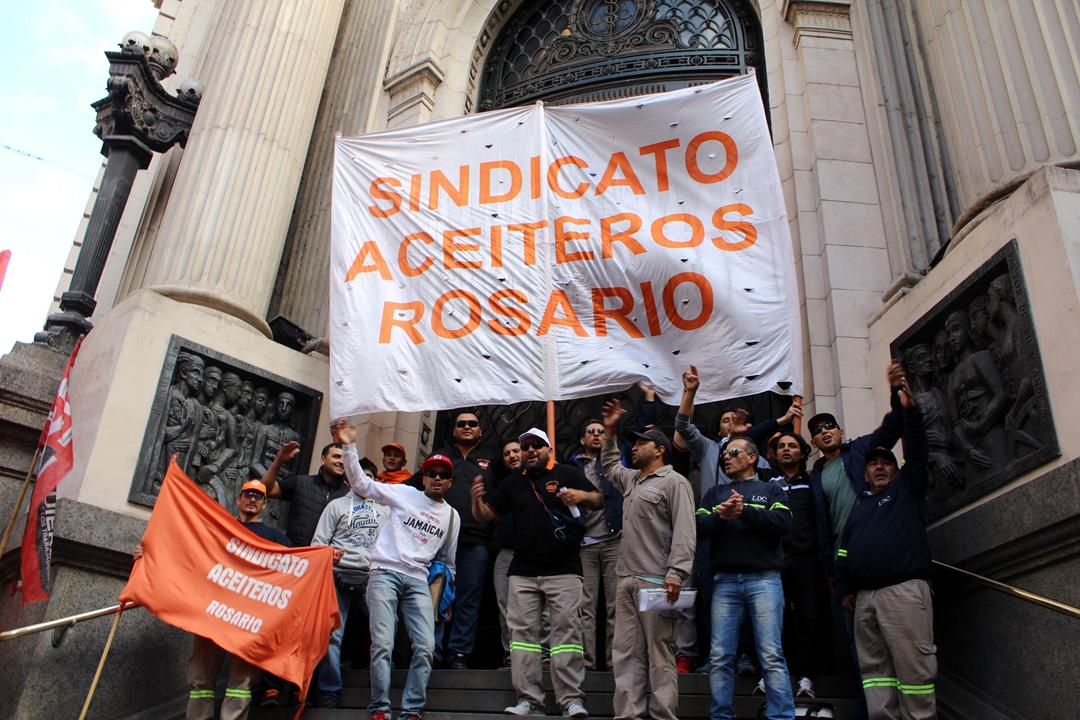 Por Sofía Alberti* | Esta mañana, los aceiteros movilizaron en Rosario desde las oficinas de Cargill hacia la Bolsa de Comercio. Lo hicieron acompañados de un amplio arco de organizaciones, entre ellas la CTA Autónoma, exigiendo la reincorporación de los despedidos. Denuncian persecución sindical y el intento de desafuero de un delegado.