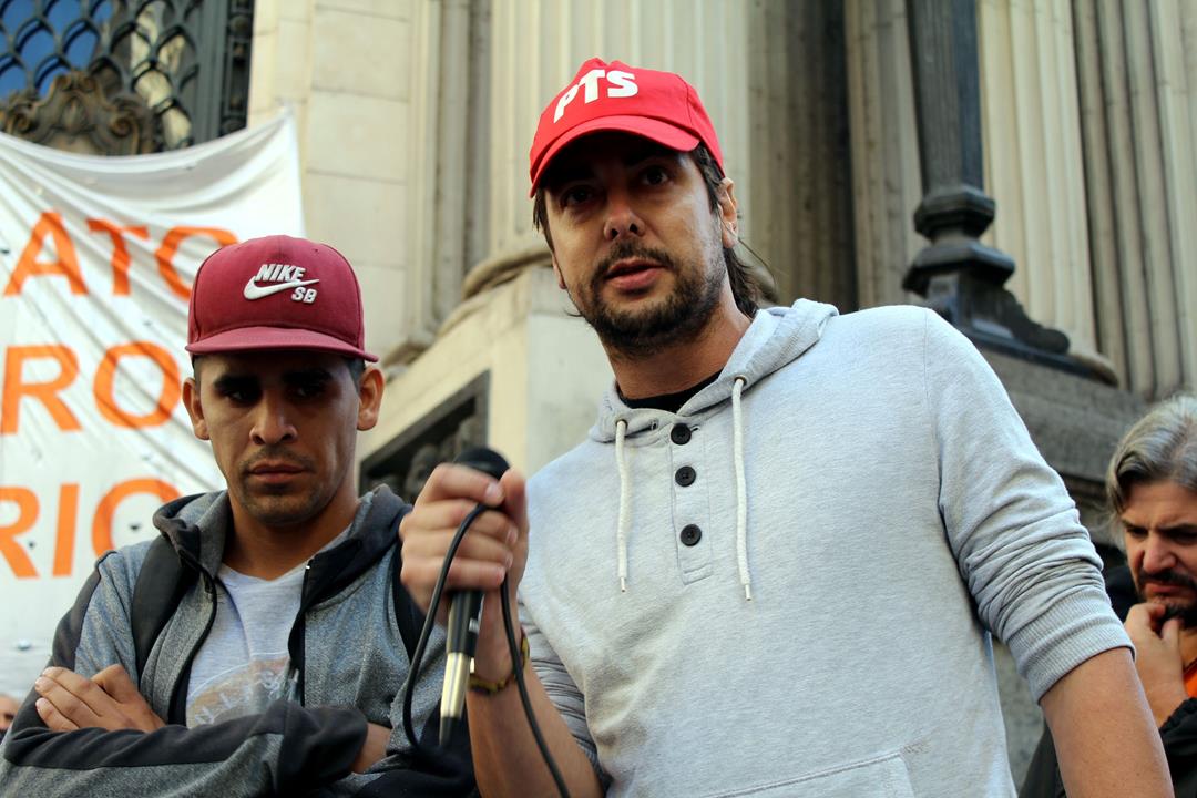 Hacia el cierre del acto, Pozzi expresó mirando hacia la Bolsa: “Que empiecen a ponerse nerviosos. Me gustaría ver si los tapizados de sus sillas no tienen cuero de trabajadores. Hay que llevar esta lucha desde el amor y esto de hoy me permite soñar con ganar el conflicto. Después vamos a venir a buscarlos para preguntarles por qué nos tienen que interrumpir proyectos familiares y hacernos sobrevivir con salarios miserables”.