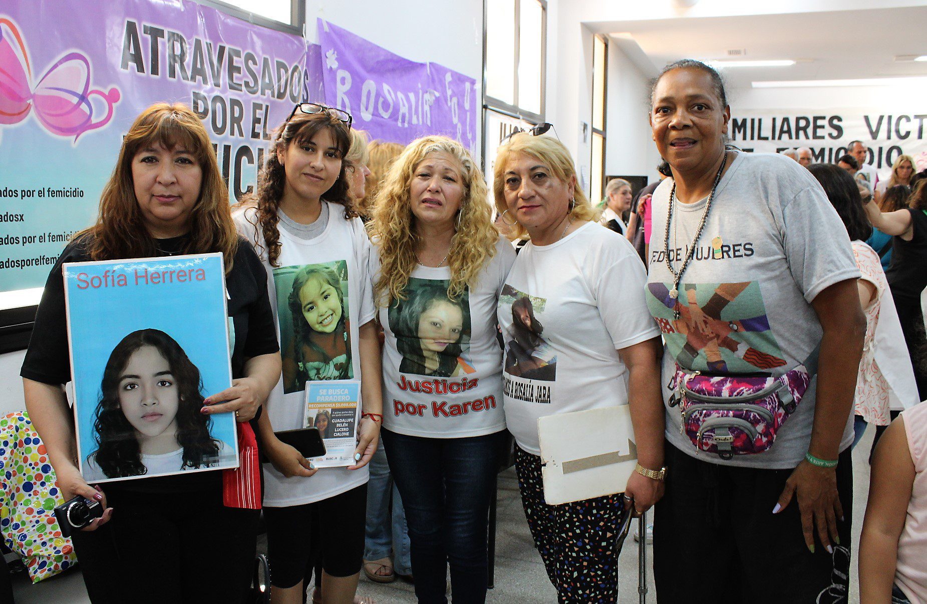 Algunos de los familiares presentes de las causas por los femicidios y desapariciones de: