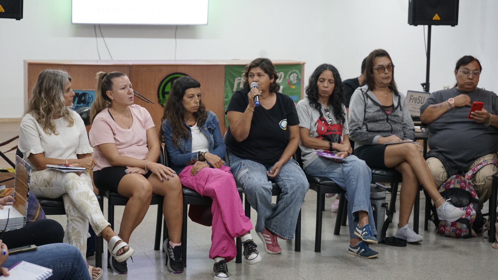 Si bien la palabra circuló con un fuerte contenido de análisis político post sanción de la reforma laboral inconstitucional, se reiteraron las necesidades de: defender y practicar el derecho a huelga, pelear en unidad por jubilaciones y salario dignos, avanzar hacia el trabajo digno, multiplicar las representaciones de base en los lugares de trabajo, generar estrategias vinculadas a la problemática del endeudamiento creciente de las familias, pelear por el derecho al tiempo –cosa que ataca la ultra flexibilización laboral y el banco de horas-, atender la salud mental, seguir defendiendo al cuidado como un derecho humano, pelear lugares de mujeres y disidencias en paritarias, etcétera.