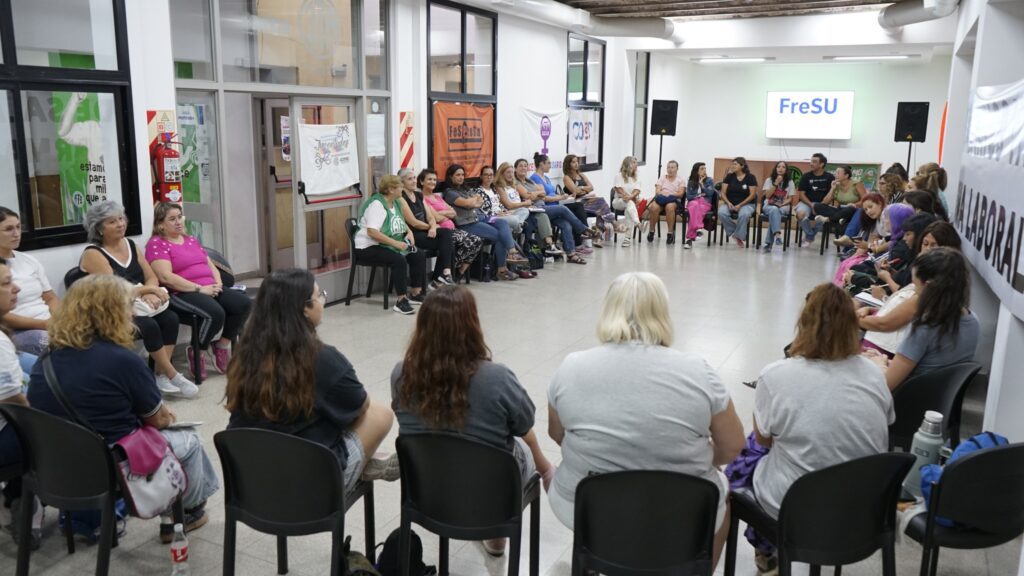 Mujeres y disidencias del Frente de Sindicatos Unidos (FreSU) realizaron el martes una ronda de cara al 8 de Marzo, Día Internacional de las Mujeres Trabajadoras. Se plantearon ejes reivindicativos centrales desde el feminismo sindical para marchar conjuntamente el lunes 9 a las 17.00 desde Plaza San Martín al Monumento.