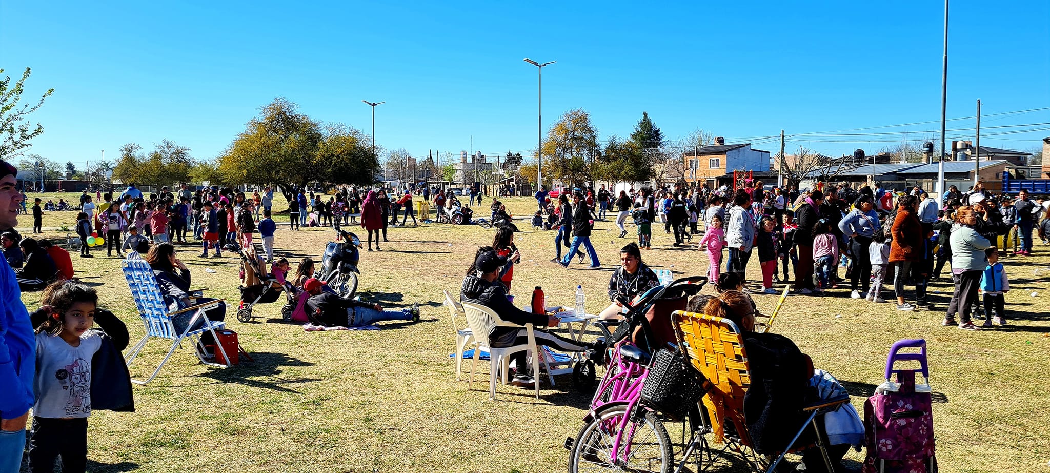 La movida fue parte de una larga lista de celebraciones que las más diversas agrupaciones se dieron en el territorio local. Sin dudas, poner el foco en lxs niñxs y su posibilidad de jugar, ser cuidadxs y encontrarse en el espacio público, fue perspectiva compartida. Las imágenes de cientos y cientos de pibxs pasándola bien en esta tierra incendiada -que tan bello canta el trovador Jorge Fandermole-, ofreció otra cara de la misma moneda: ante la desidia estatal, organización popular.