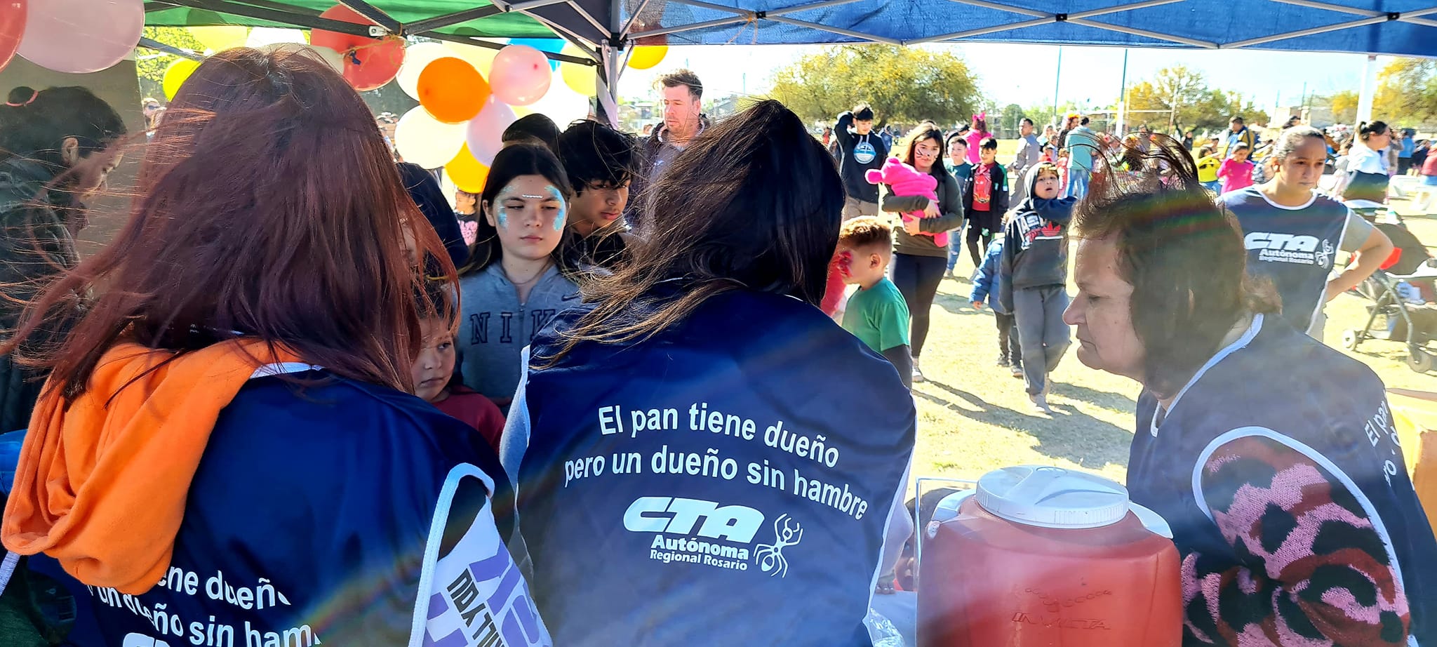 En contraposición a la dolorosa y clara síntesis ‘plomo y humo: el negocio de matar’, que copó las paredes de Rosario, durante agosto la CTA Autónoma Rosario realizó actividades para celebrar a las infancias en diversos barrios. La alegría, el cuidado y el encuentro para convocar a pensar otras realidades posibles.