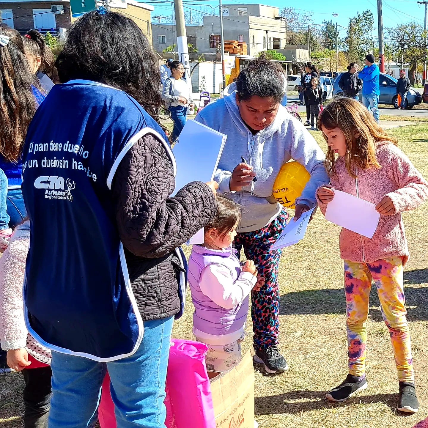 El mismo día, en Santa Lucía Viejo, sobre el terreno de la Plaza Colombres, alrededor de 700 pibxs disfrutaron de la soleada y hermosa tarde con juegos, merienda y regalos. En este caso, fue la organización de lxs vecinxs que en coordinación con la CTAA Rosario permitió vivir una jornada extraordinaria. Hubo también solidaridad de sindicatos hermanos, como el Sindicato de Aceiterxs de Rosario (SOEAR), que donó juguetes para el evento.