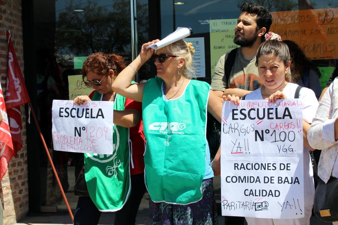 Finalizando noviembre, las trabajadoras y trabajadores de la educación pública advierten la necesidad de concretar los arreglos en materia edilicia, de luz y gas antes del inicio del ciclo lectivo 2019. Y piden que se sostenga la provisión de alimentos en vacaciones a los niños cuya única ingesta diaria o la principal la realizan en la escuela. Hubo presencia de comunidades educativas de Rosario, San Lorenzo y Villa Gobernador Gálvez.