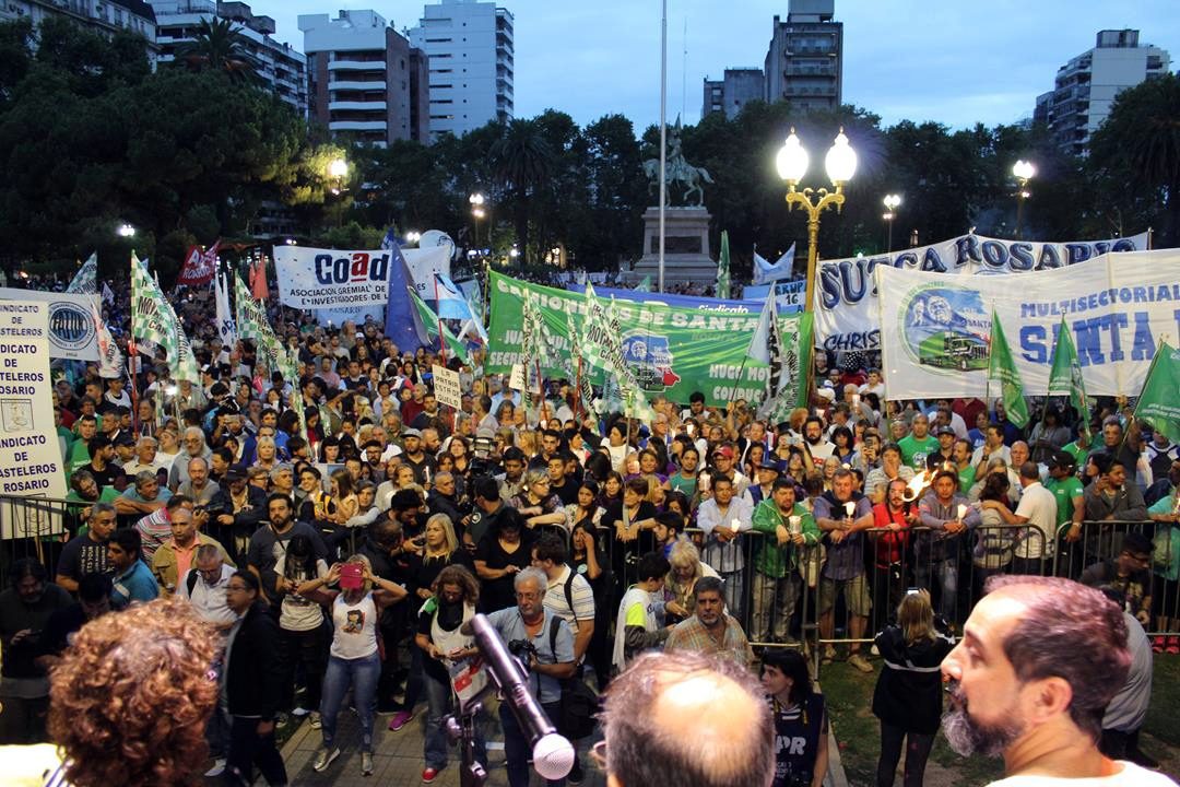 El jueves alrededor de 35 mil personas se movilizaron en Rosario en el marco de las marchas de antorchas que se llevan adelante en distintos puntos del país convocadas por un amplio frente gremial. Hubo rechazo unánime al ajuste perpetrado desde diferentes niveles de gobierno.