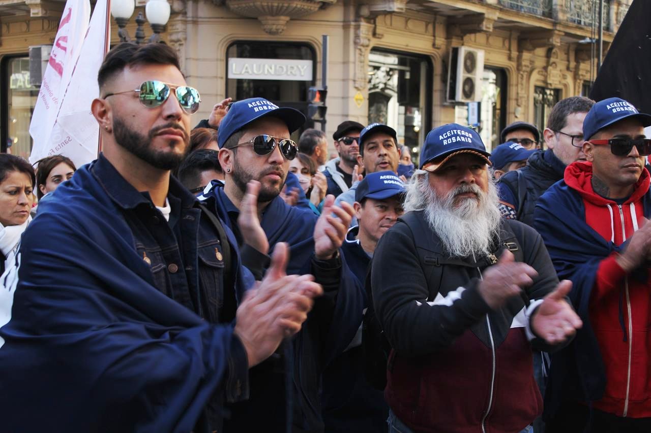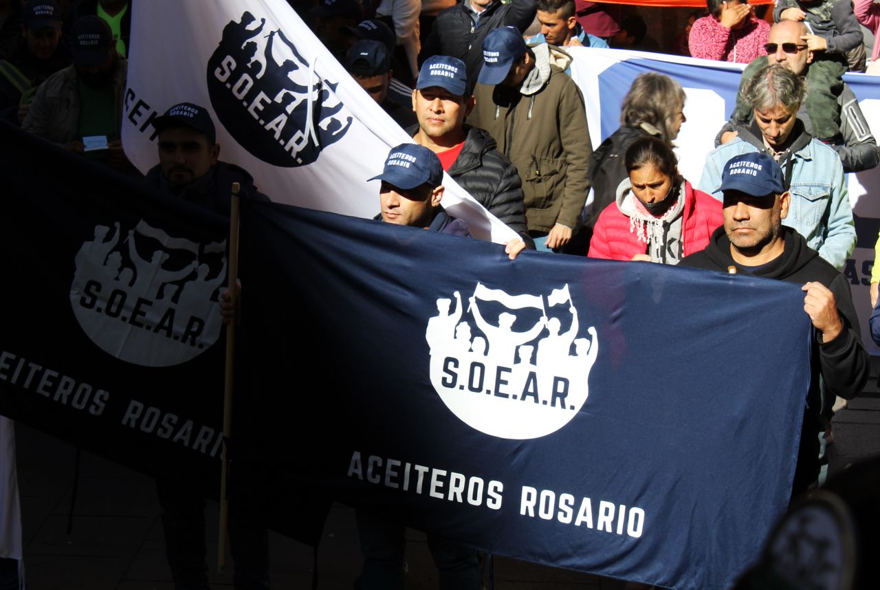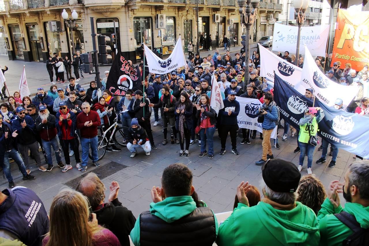 Cientos de personas se congregaron en la mítica esquina rosarina de Corrientes y Córdoba el frío domingo 1º de Mayo. En esa intersección el pueblo dio parte de sus grandes batallas contra el poder a lo largo de la historia, como en los Rosariazos. También se vivieron grandes paros nacionales. Hoy, a la vez, allí se erigen los edificios donde funcionan los grandes grupos de poder económico.