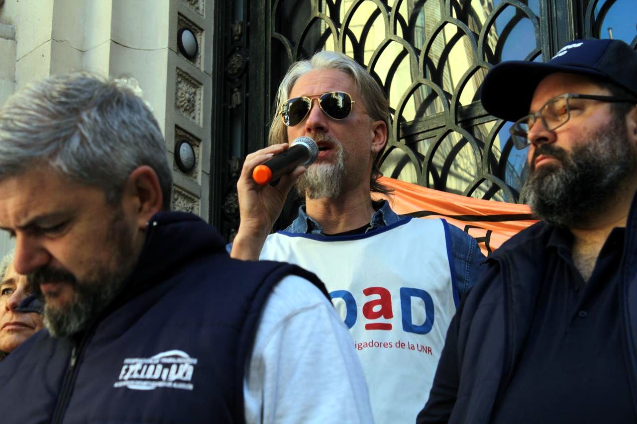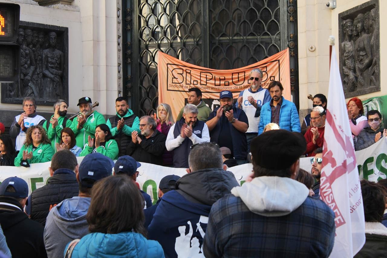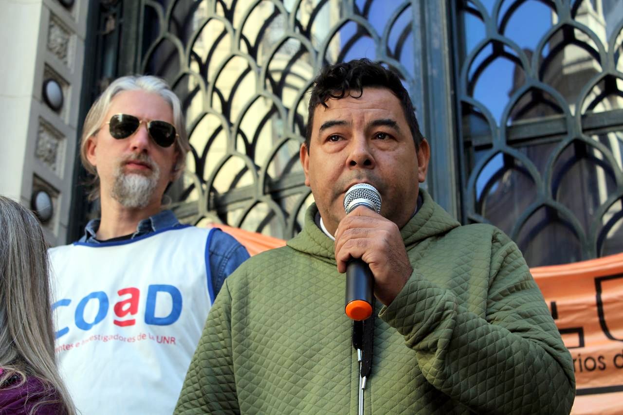 “Hoy es el día de los que hacemos que la rueda siga girando, hoy es el día de aquellos que producimos y generamos las riquezas y generamos todos los bienes necesarios para que la humanidad funcione, como lo hicimos también en los tiempos difíciles de la pandemia”, dijo el Secretario General de la CTAA y Amsafe Rosario, Gustavo Terés. Y recordó al recientemente fallecido referente de la Mesa Coordinadora de Jubiladxs y Pensionadxs de Rosario, Enrique Gigena.