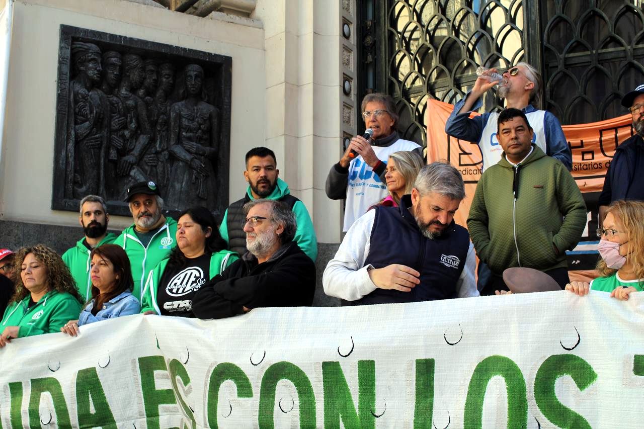 Terés llamó a luchar “contra el acuerdo con el Fondo Monetario Internacional, contra la precarización laboral y la desocupación que hace que miles y miles de jóvenes ni siquiera puedan acceder al primer empleo, para el acceso a los derechos de nuestras infancias a la educación pública, a la salud pública, que son dos de los bocados más apetitosos que tienen los organismos internacionales para destruirnos”. Llamó a los gremios a prepararse, porque “hacen falta más asambleas en los gremios, deliberar mucho más en los sindicatos, encontrar muchos más espacios de convergencia, porque hay que ir preparando movilizaciones nacionales, hay que ir preparando movilizaciones regionales y hay que llegar a un paro nacional contra el ajuste que tan mal hace a nuestro pueblo”.