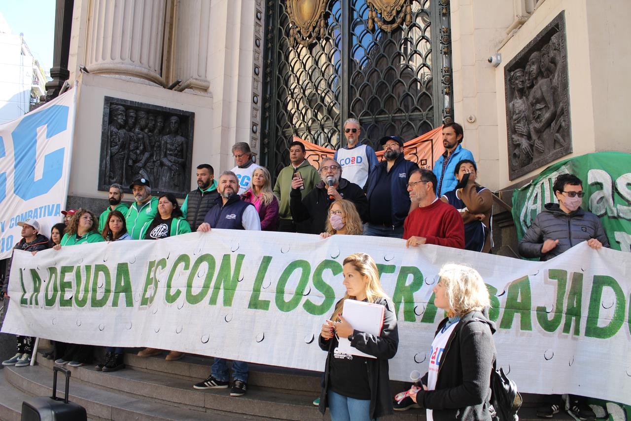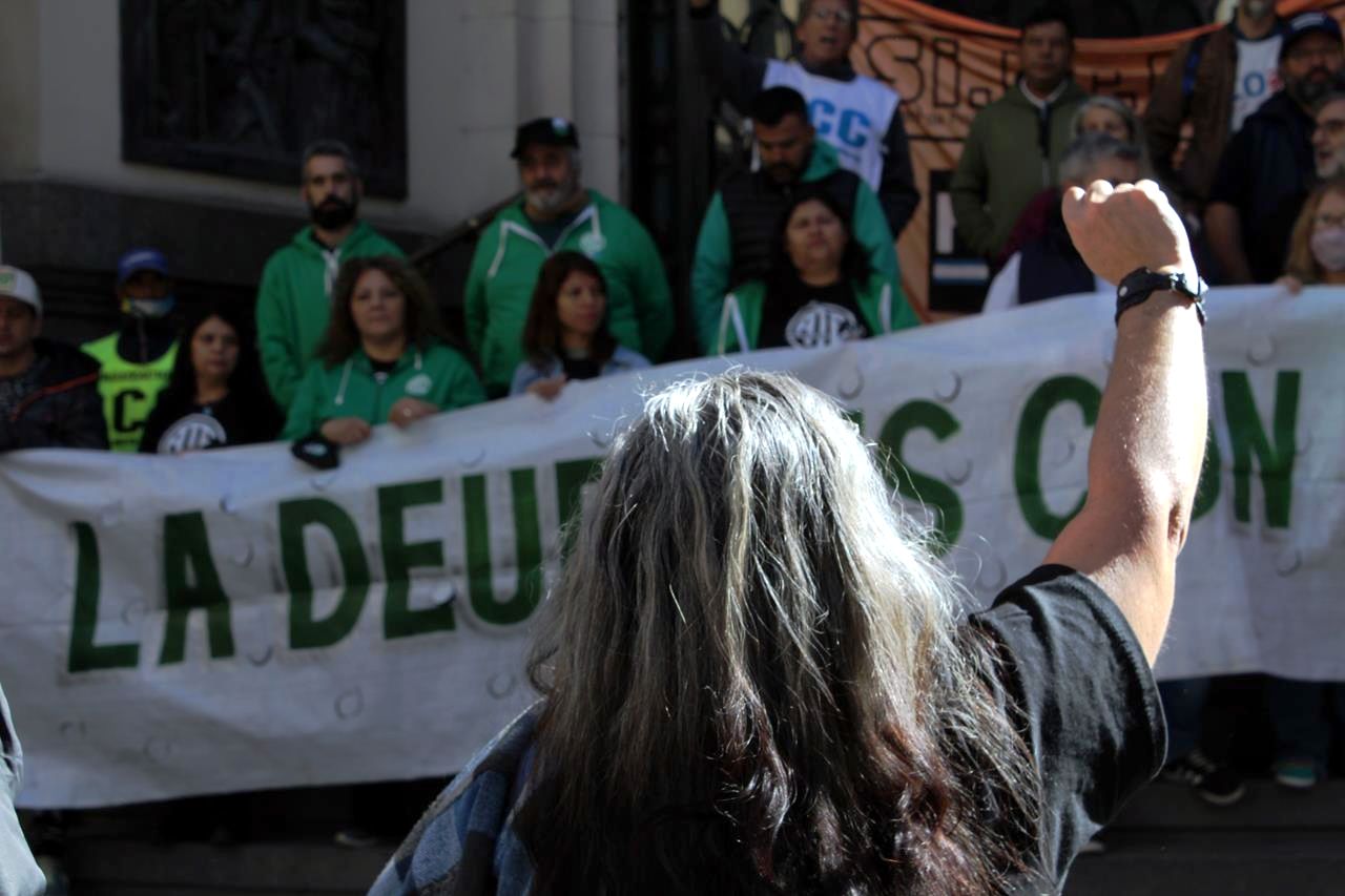 Por eso, con la necesidad del reencuentro y la memoria, para plantarse en un presente acuciante para la clase obrera, una decena de oradores y oradoras de organizaciones sindicales y sociales tomaron la palabra. Lo hicieron tras una bandera que decía: ‘la deuda es con los trabajadores’.