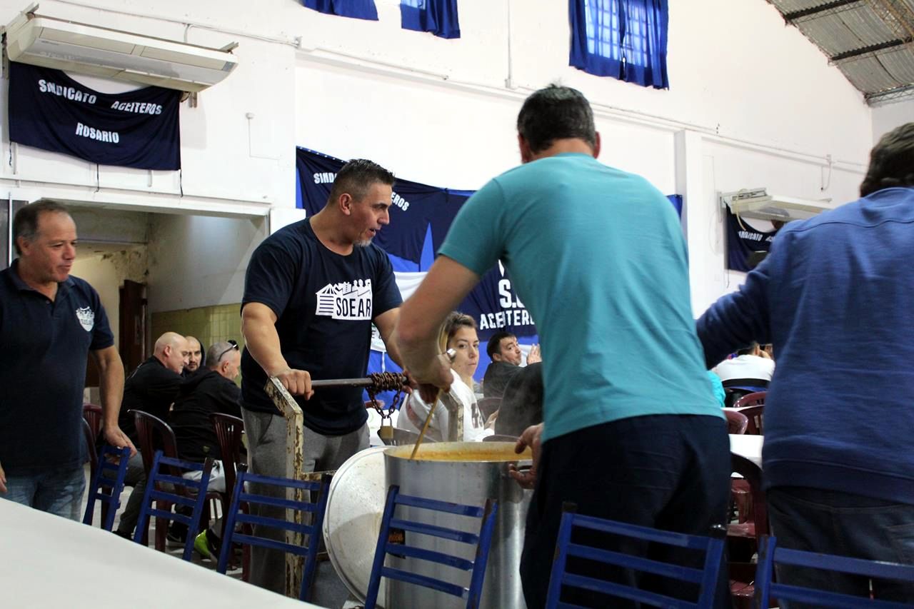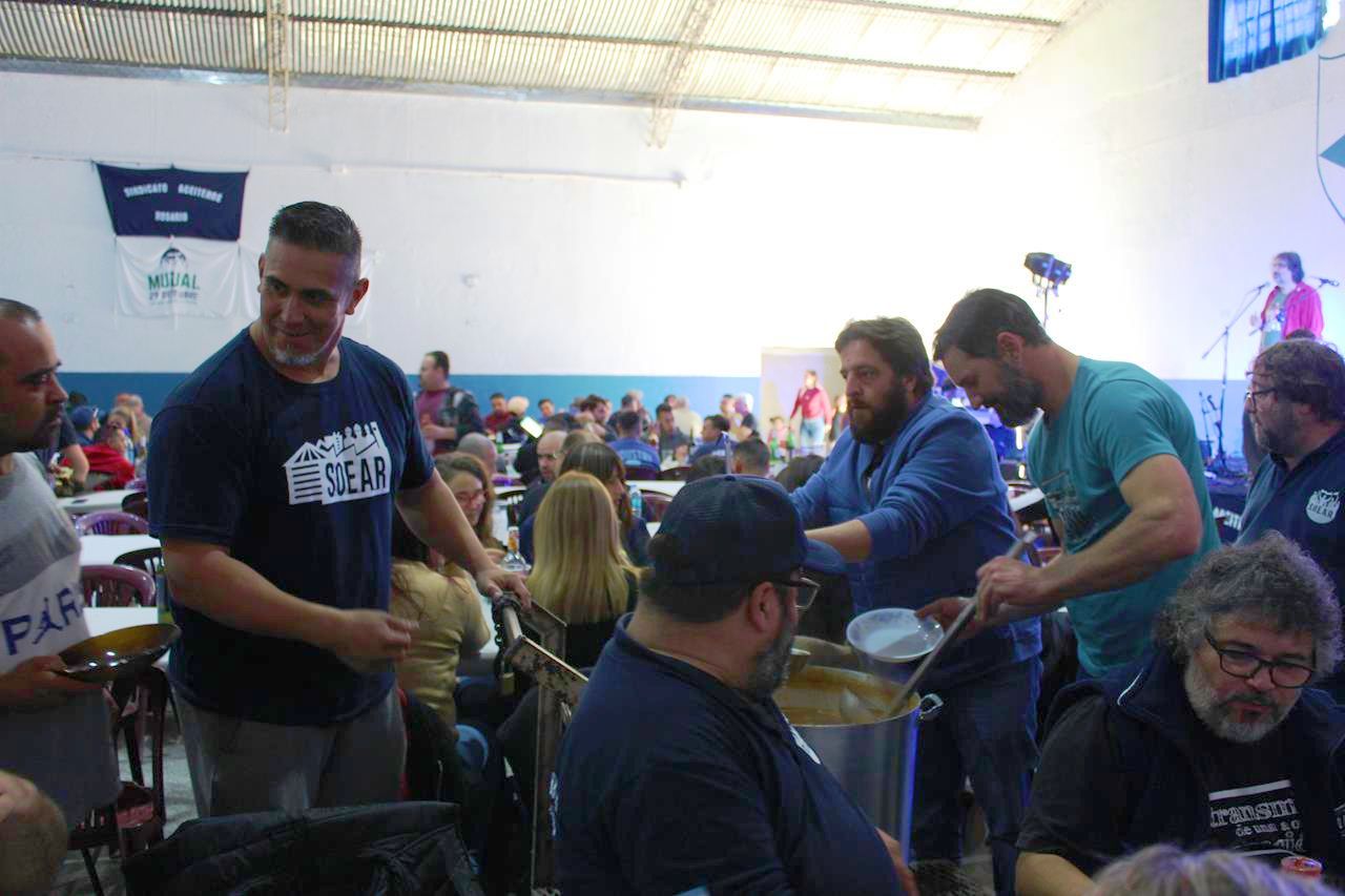 Otro, en Alvear, donde cientos de Aceiteros y aceiteras se reunieron y convocaron referentxs de organizaciones hermanas a compartir un gran locro, con música, videos alusivos a la fecha, y discursos breves y potentes de los dos dirigentes del sector: el Secretario General de la Federación Aceitera y Desmotadora, Daniel Yofra, y del Secretario General del SOEAR, Marco Pozzi. Ambos convocaron a seguir creciendo en conciencia y luchando por los derechos obreros.