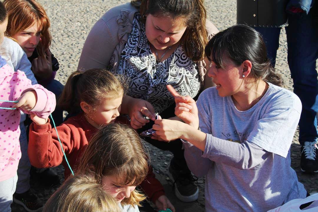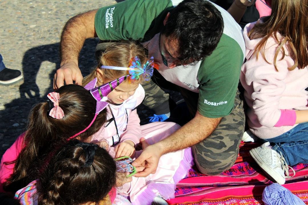 El día acompañó, la comunidad rosarina en plenas vacaciones de invierno se sumó, las manos pintadas de los niños y niñas llenaron de vida el espacio. Quizás la muestra más clara de la importancia de la tarea de estos jóvenes en el Tríptico se vio en las rondas y las manos entrelazadas con hilos de colores. Y en la luz de las sonrisas y las miradas embelesadas de las pequeñas y pequeños hacia quienes hicieron de esa tarde una tarde mágica, simplemente, haciendo su trabajo.