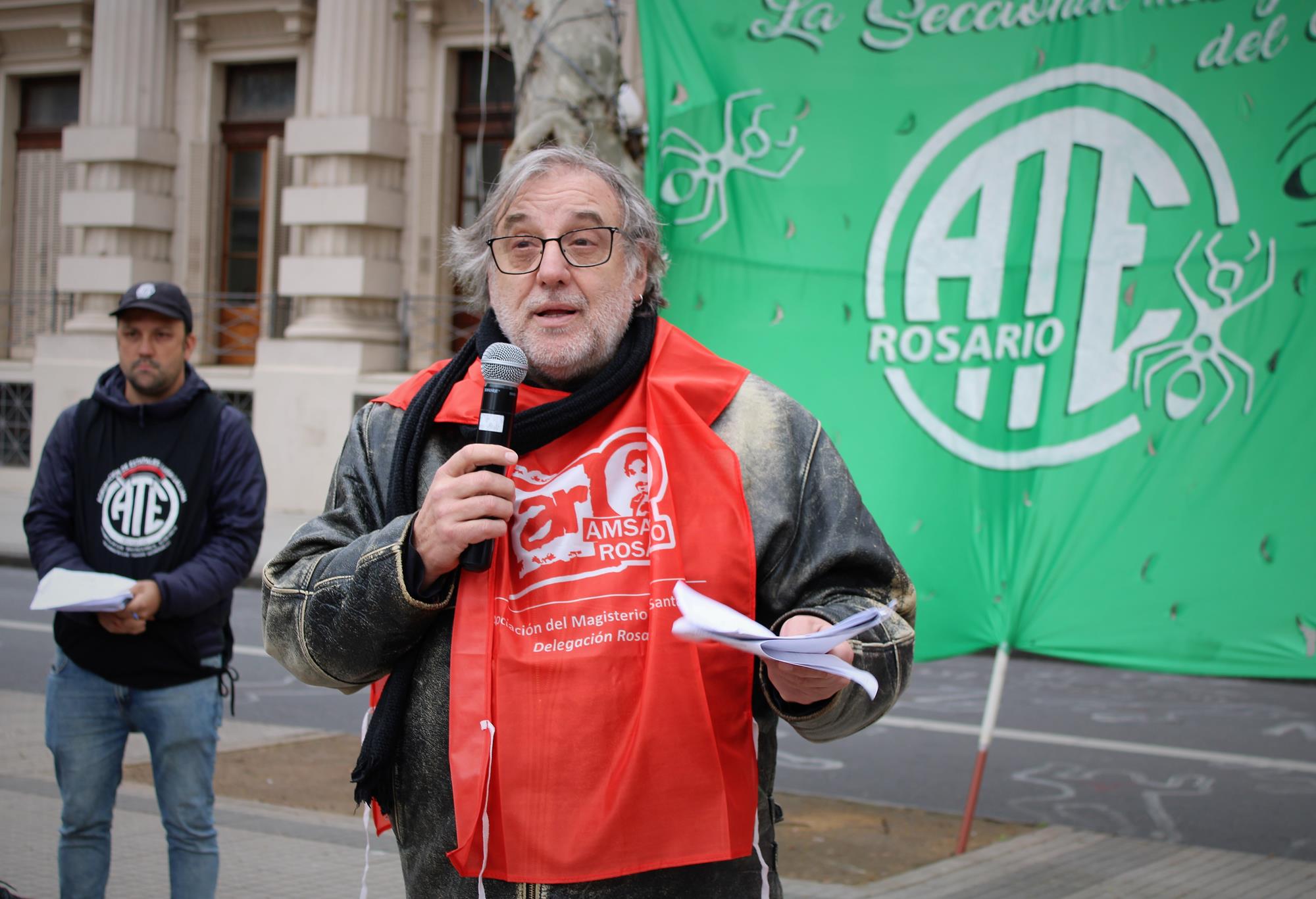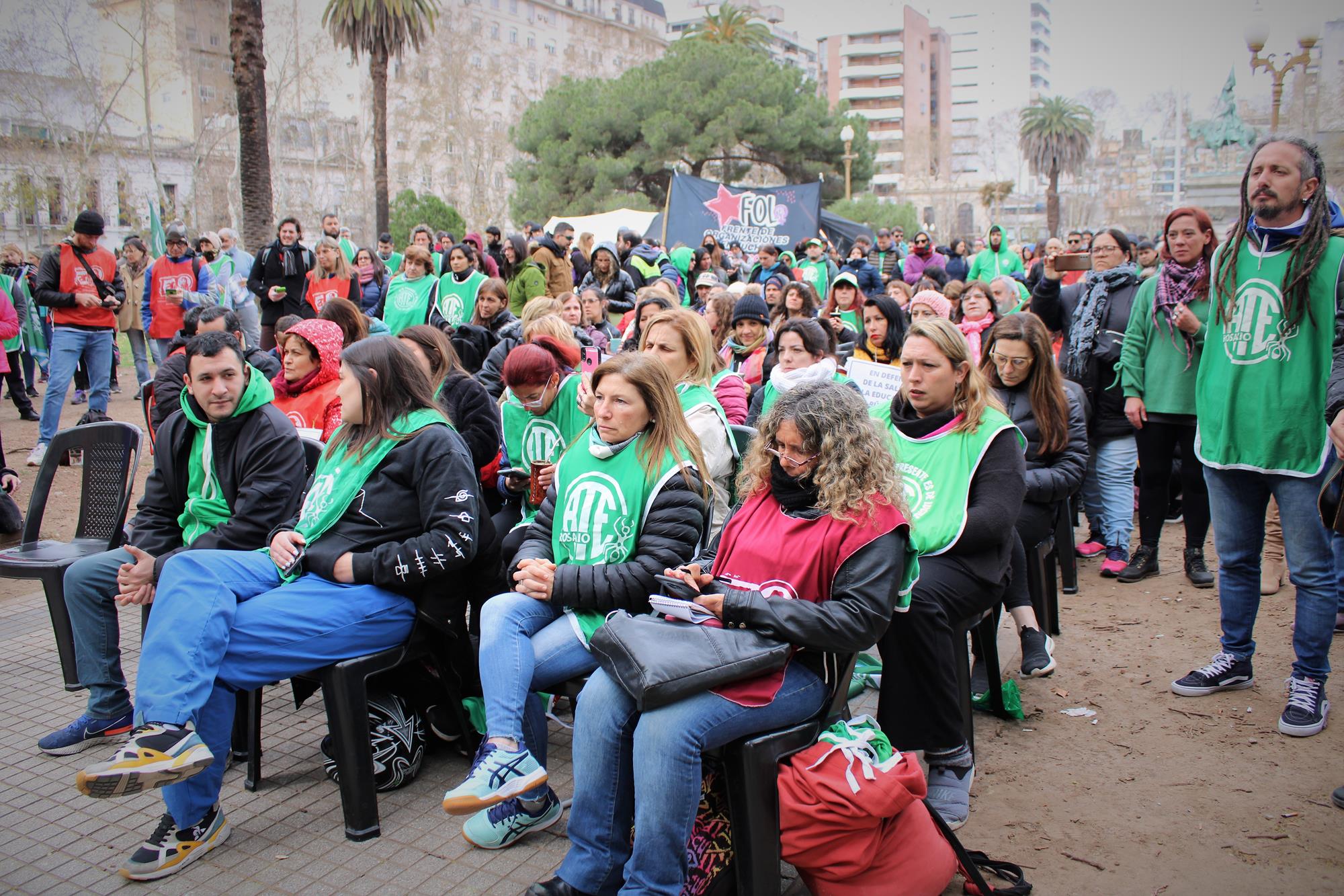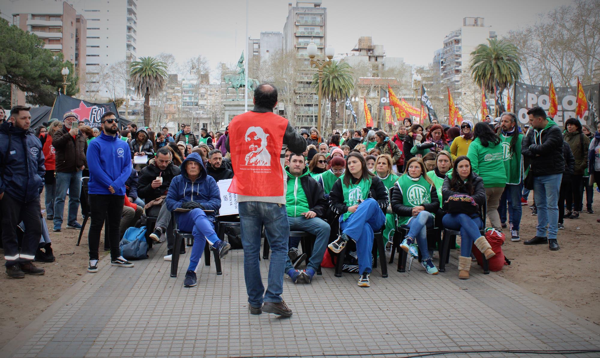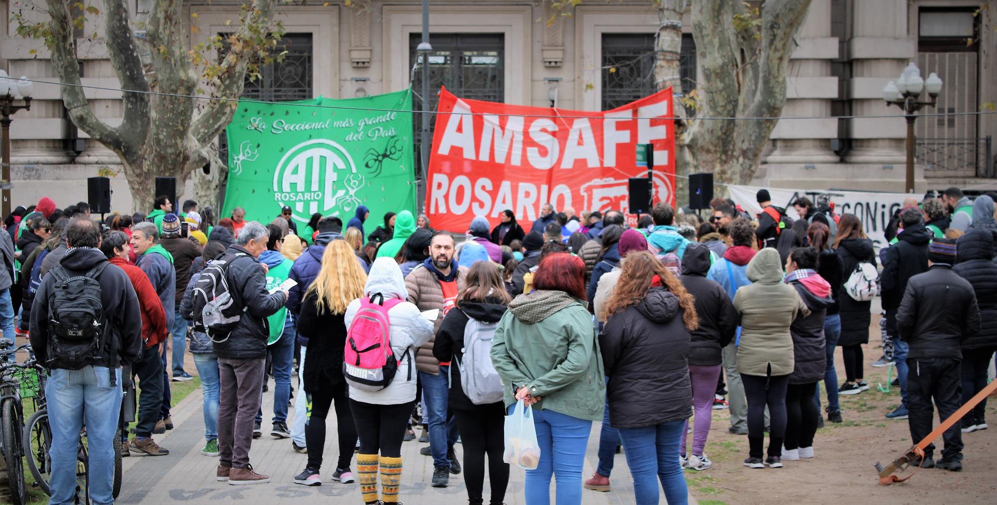 Pese a la fría jornada, la convocatoria realizada por la CTAA Rosario, ATE Rosario, Amsafe Rosario, COAD y el Sindicato de Jaboneros, junto a otras organizaciones gremiales y sociales, tuvo activa participación de los cuerpos de delegados y delegadas y juntas internas. El planteo unitario era pararse contra el ajuste en curso y por venir, por las condiciones laborales y contra la precarización, en defensa de la salud y la educación públicas, por salarios y jubilaciones dignas.