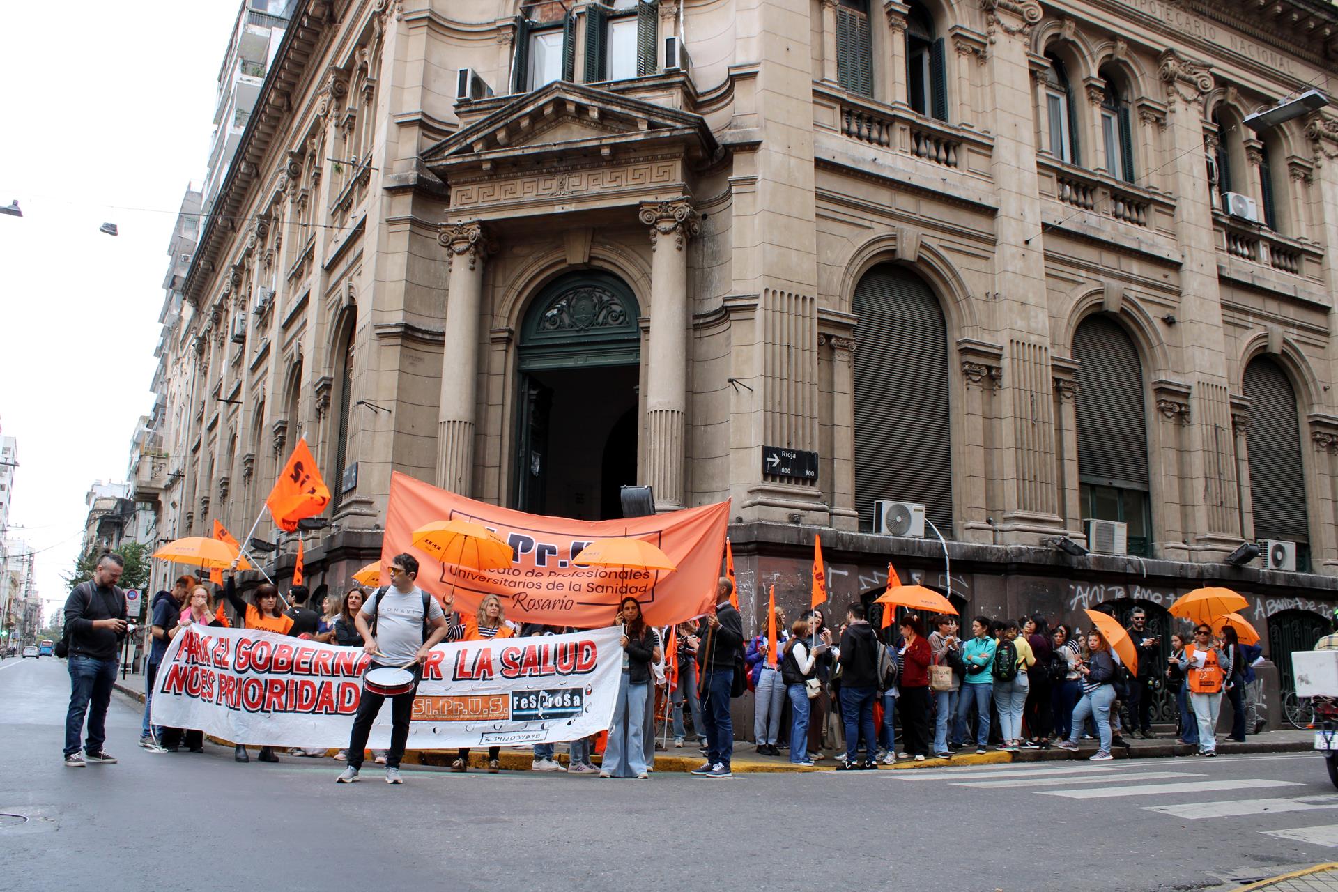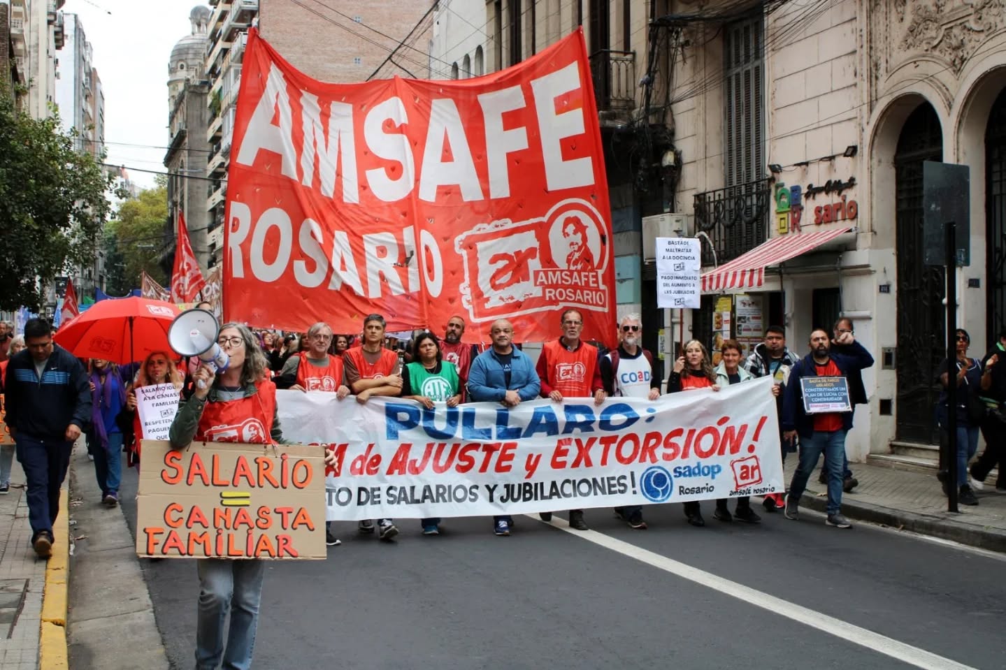 ATE Rosario, AMSAFE Rosario, SIPRUS, SADOP y COAD –en solidaridad-, exigieron que  “Pullaro escuche a los estatales”. Insistieron en sus reclamos por salarios dignos, condiciones de trabajo, el fin de la precarización en todos los niveles del estado, titularizaciones, exámenes para aspirantes a Asistentes Escolares, subrogancias, el fin del presentismo en la docencia y que el aumento para las y los jubilados se abone en el momento que lo cobran las personas en actividad.