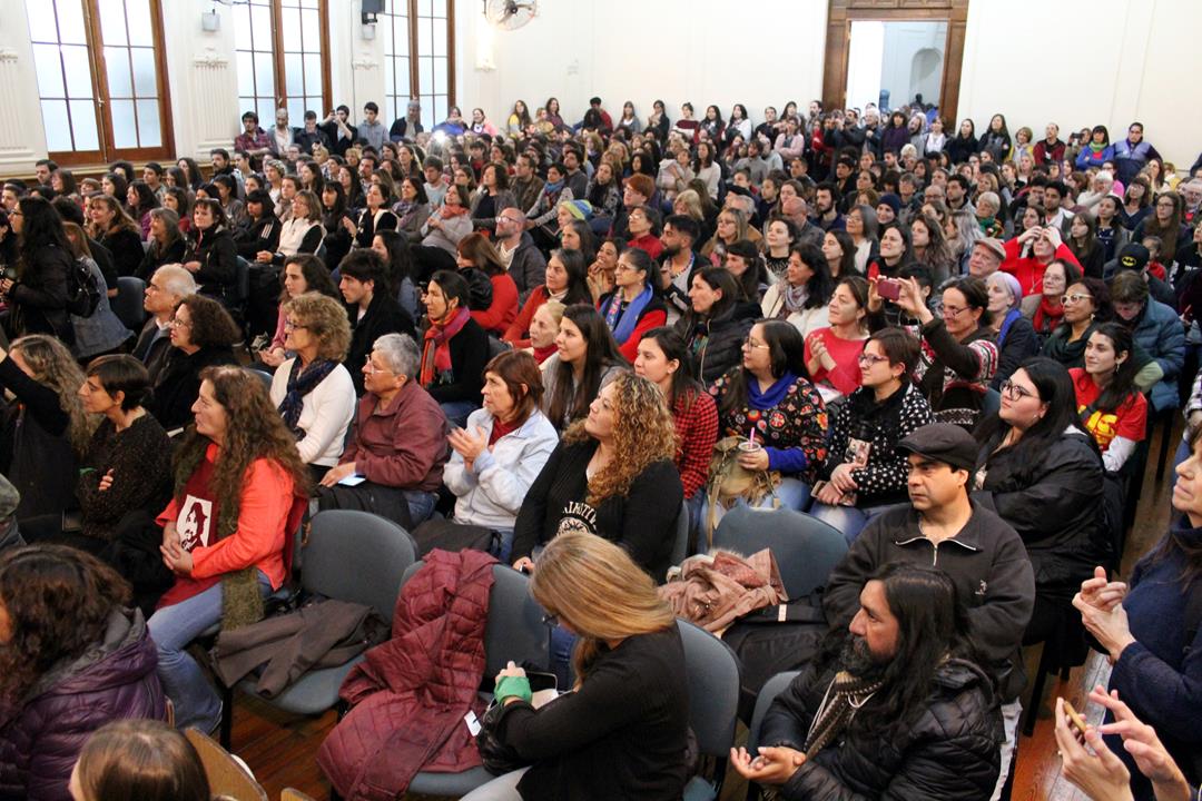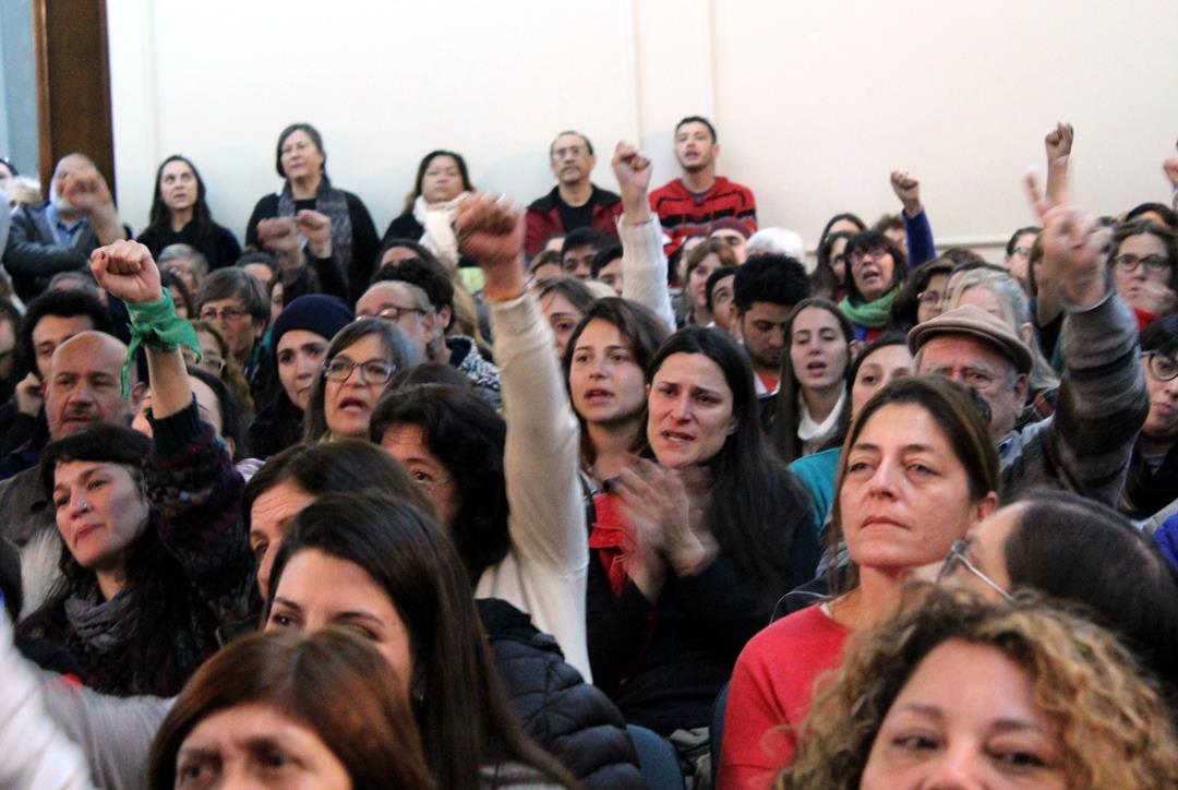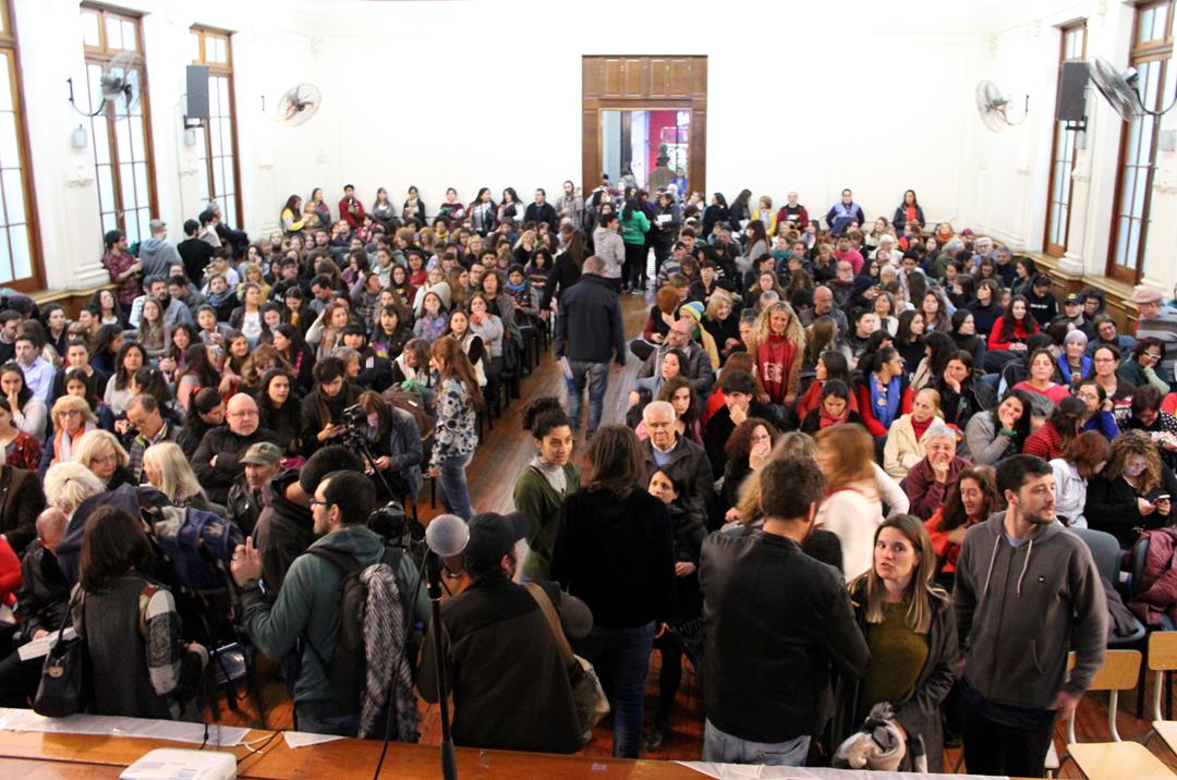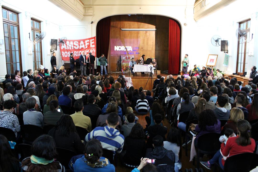 Es la hora de la salida del Normal 2. La pibada termina su día de clase, pero la escuela permanecerá abierta hasta cerca de medianoche en un salón de actos que se torna aula y escenario del conmovedor abrazo colectivo. La convocatoria trabajada largos meses por ATE Rosario, Amsafe Rosario, Arde Matria y Ciudad Futura, va a llenar el corazón de cientos de personas que empiezan a ocupar cada rincón del espacio.