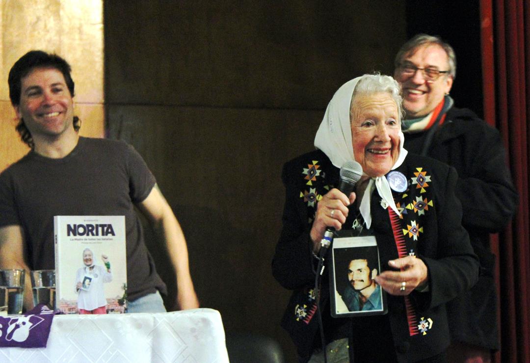 Gerardo y Nora mantienen una sinergia entrañable. La admiración se refleja en cada mirada e intercambio. La biografía logra estar a la altura que Norita se merece y ‘plancha’ cualquier intento de búsqueda de palabras más certeras para definirla. “Escribir un libro sobre Norita sin dudas es una tarea inmensa y hermosa, que nos ha hecho muy bien. Gracias por eso. Por ser tan generoso en lo que has hecho”, expresa Celeste Lepratti, hermana de Pocho, asesinado en su lugar de trabajo en las jornadas de rebelión de diciembre de 2001. La también concejala de la ciudad, porta un cartel que recuerda que César Milani es un genocida y con él y sus pares de armas no existe reconciliación posible.