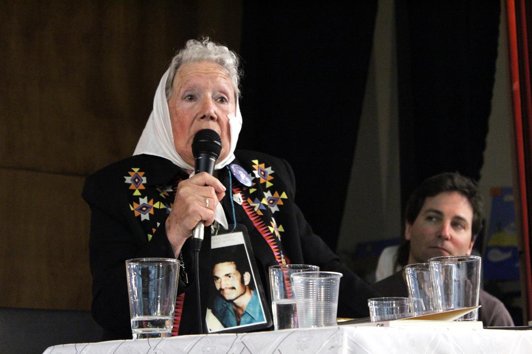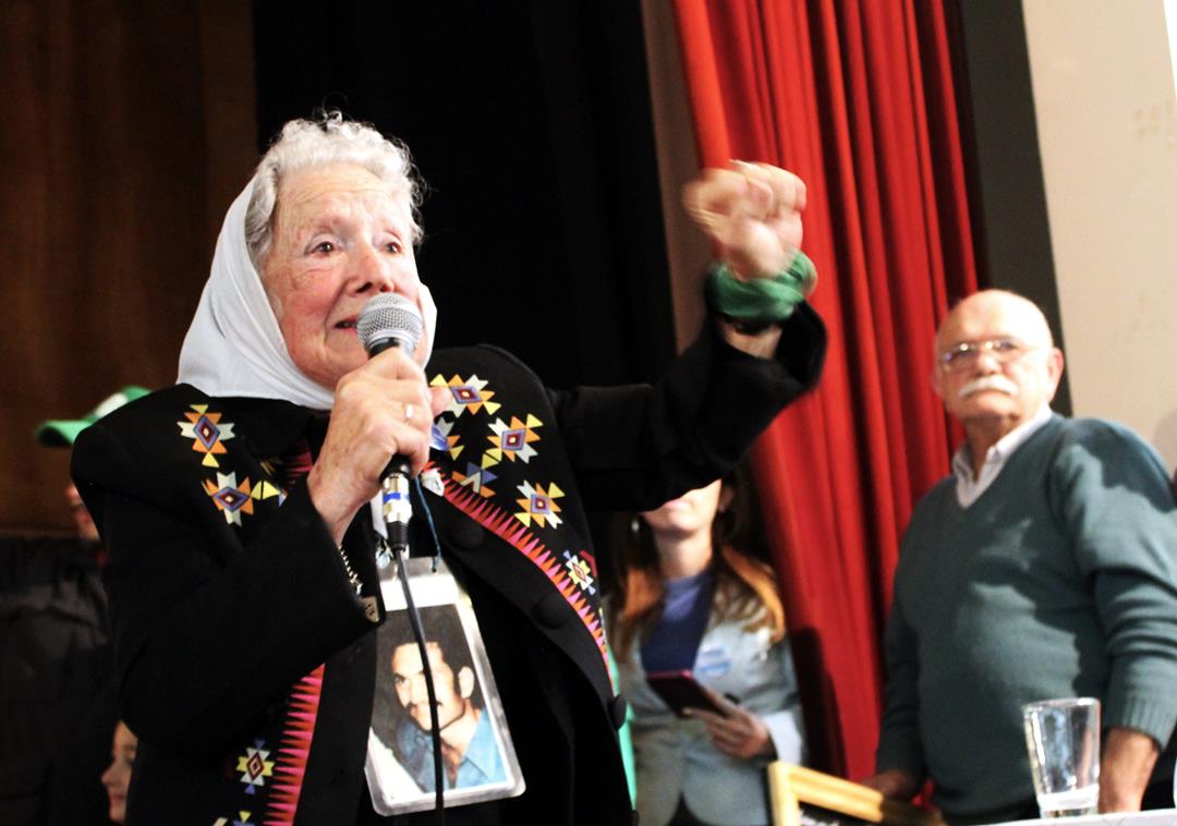 “Somos muchos los que luchamos en estas batallas que se están haciendo pesadas, pero seguimos. Mi batalla es buscar a Gustavo, que se abran los archivos, que nos digan dónde están los detenidos desaparecidos y que se cumplan los deseos de los 30 mil y de todo el pueblo. Que no haya hambre, que se terminen los despidos, que toda la gente tenga trabajo y vida digna, esa es la batalla principal. Queremos que Argentina sea un país donde entremos todos y todas”, afirma Nora Cortiñas.