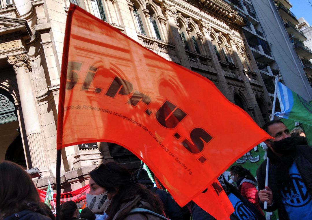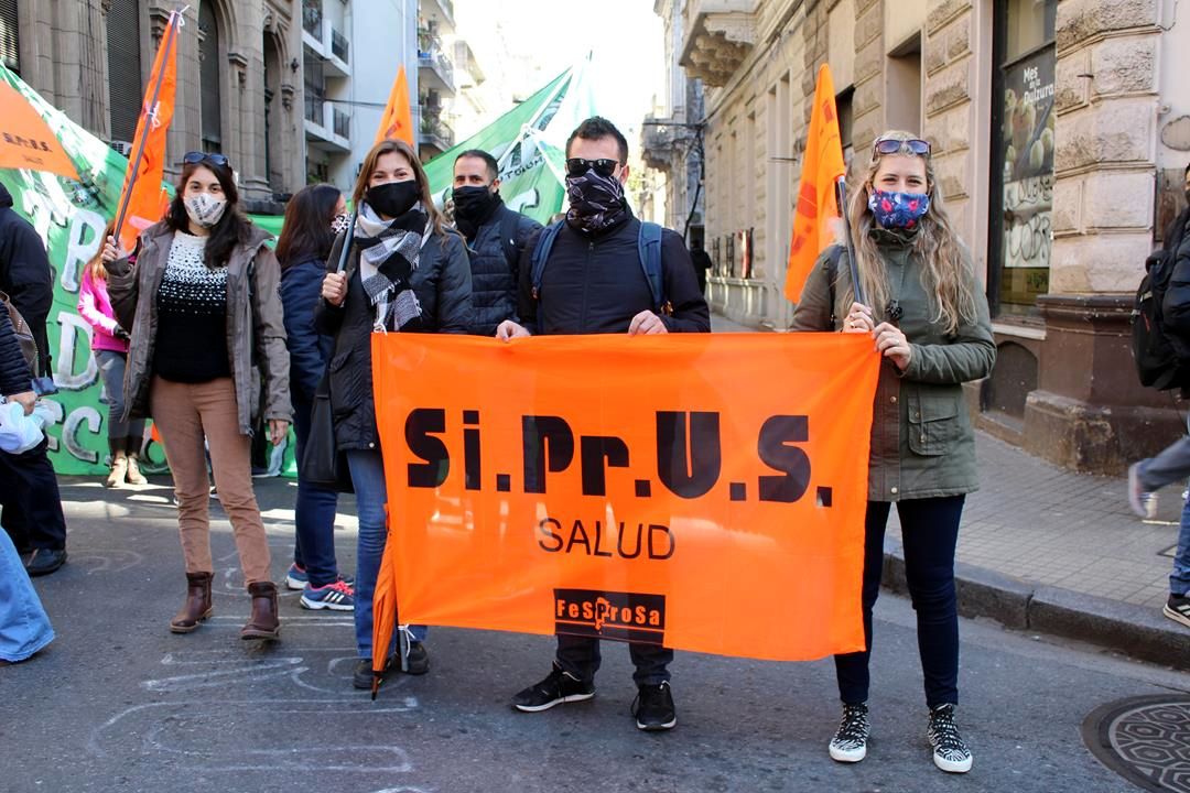El Sindicato de Profesionales de la Salud (SIPRUS) hizo jornada provincial de lucha con paro el miércoles y desafectación el jueves. “Queremos los pases a planta, desprecarizacion de profesionales del sector salud y pago de deudas. El bono no viene a solucionar nada, todo lo contrario. Como no lo aceptamos, lo sacaron por decreto”, explicó la Secretaria Adjunta de la CTAA Rosario, Secretaria General de SIPRUS y Presidenta de la federación del sector, Fesprosa, María Fernanda Boriotti.