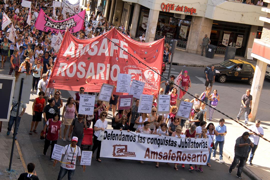 Por Sofía Alberti* | El miércoles una gran marcha recorrió desde Plaza 25 de Mayo a la sede local de gobernación, reclamando por el insuficiente aumento salarial ofrecido por las autoridades a los y las estatales provinciales. En Rosario, el rechazo al 15% en cuotas fue unánime y no habrá inicio del ciclo lectivo. Se espera además un paro nacional docente para la semana entrante. Tras la firma del pacto fiscal, la provincia parece alinearse con el ajuste nacional.