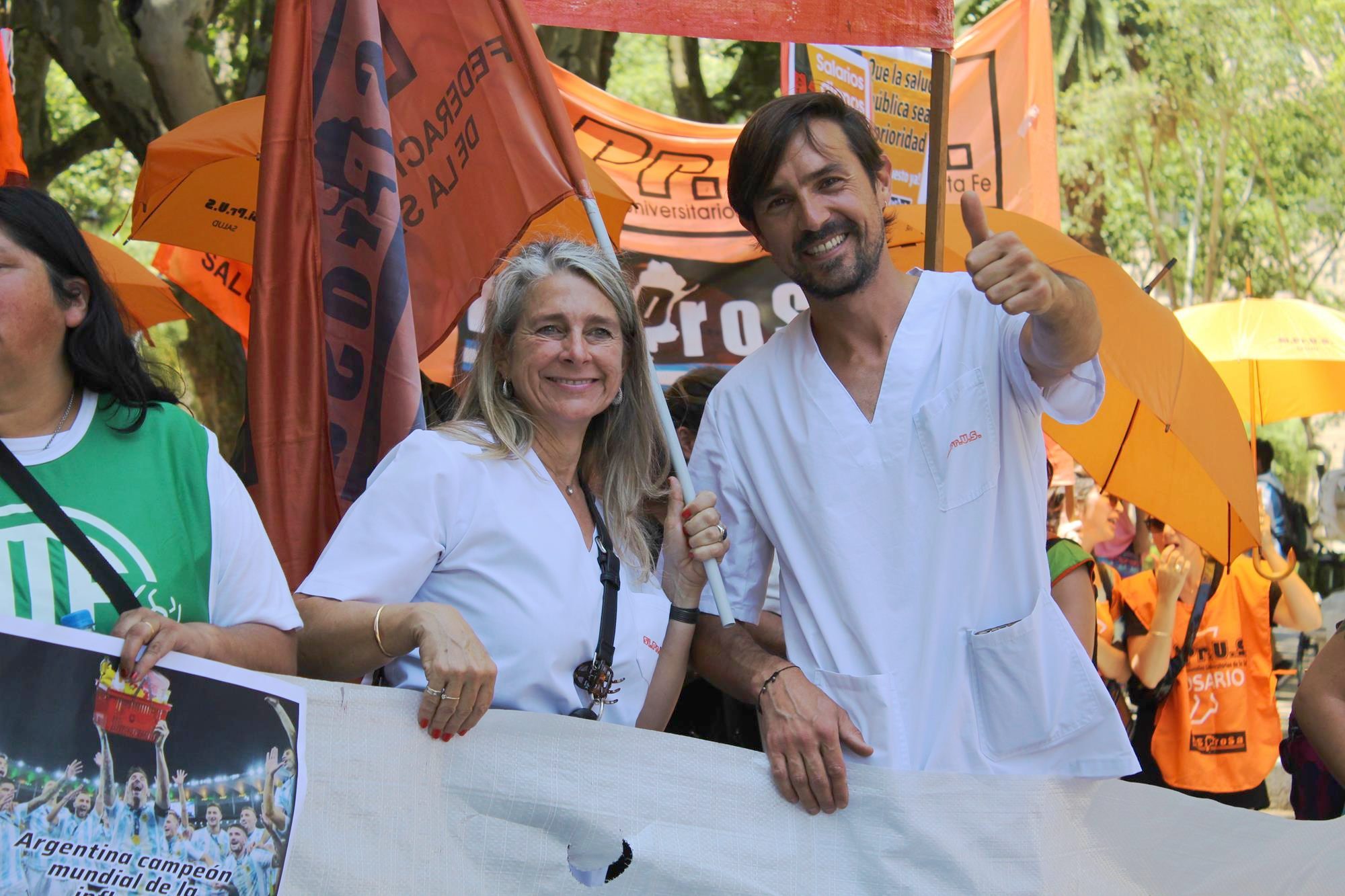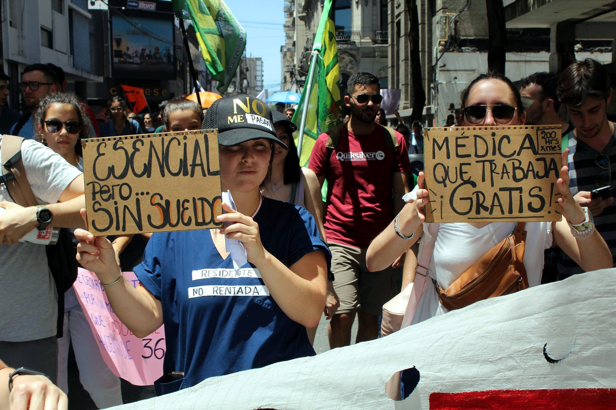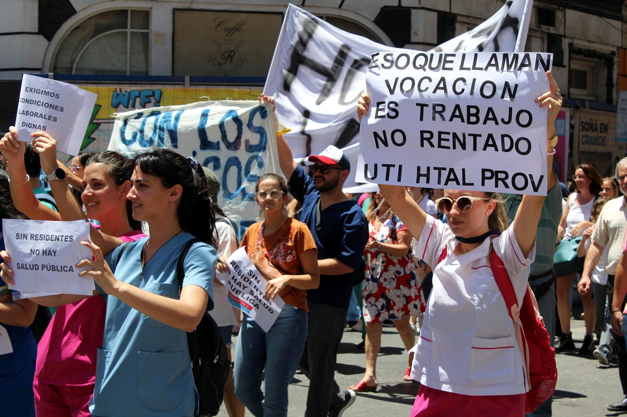 El conflicto de residentes de CABA fogoneó la reacción de ese nutrido y totalmente precarizado sector. Las expresiones de descontento acerca del funcionamiento del sistema público de salud y la carga de los ajustes sucesivos sobre quienes lo sostienen cotidianamente, se multiplicaron en gritos y carteles. “Sin aportes, sin vacaciones, sin aguinaldo”; “220 horas mensuales, médica que trabaja gratis”, “Llevo 32 horas sin dormir. ¿Te atenderías con nosotros?”, eran algunos de los reclamos plasmados en papeles y cartones.