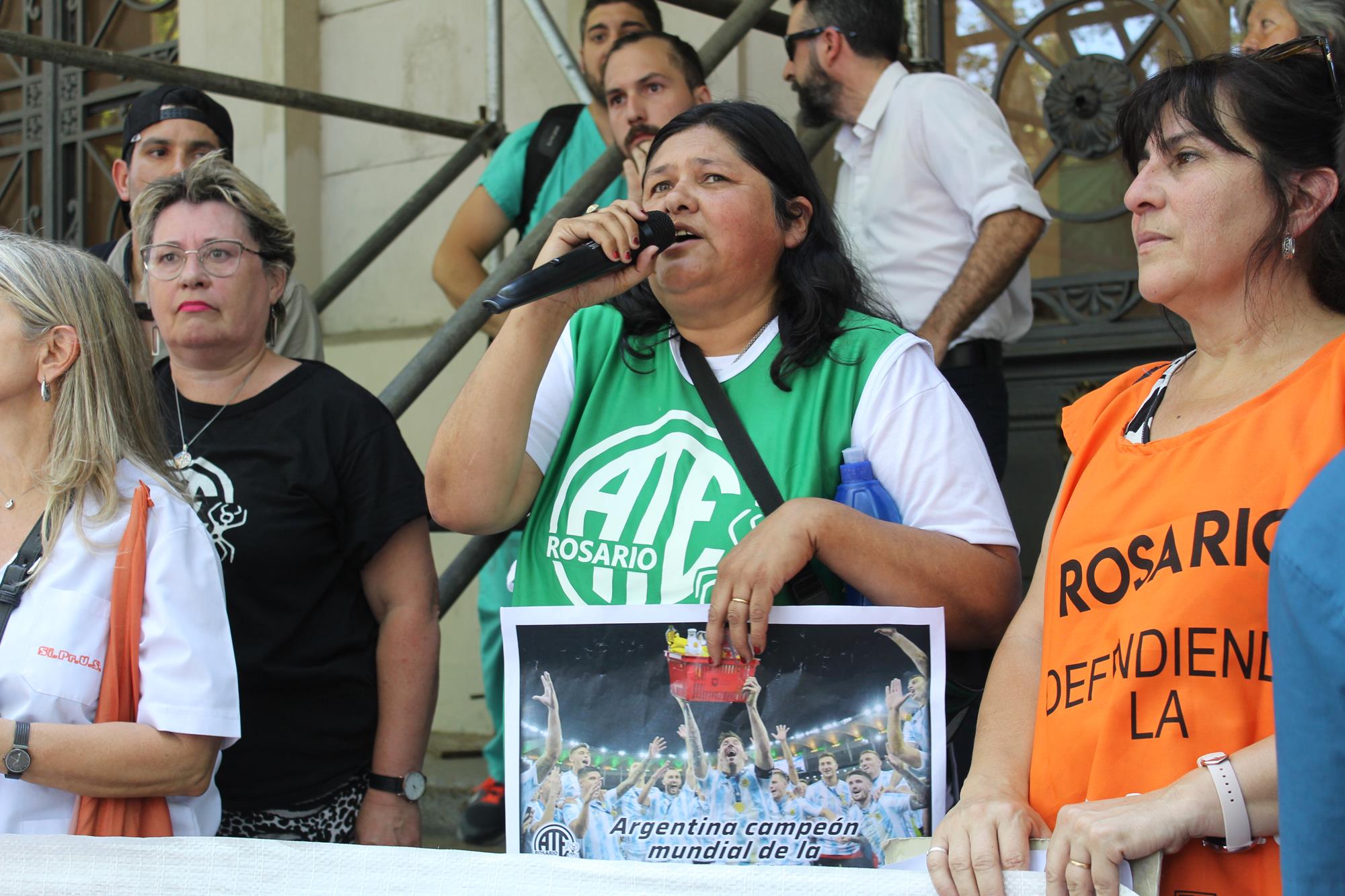 “Hoy el sistema de salud público de esta provincia está en terapia intensiva. Pero los trabajadores y trabajadoras de la salud estamos de pie, luchando por nuestros derechos”, consideró la Secretaria General de la CTA Autónoma y ATE Rosario, Lorena Almirón, con un cartel en mano que denunciaba: «Argentina, campeón mundial en inflación». Es que según indicó un informe de Canal Abierto, de los 32 países que se medirán en Qatar, el nuestro es el que presenta mayor índice de aumento de precios.