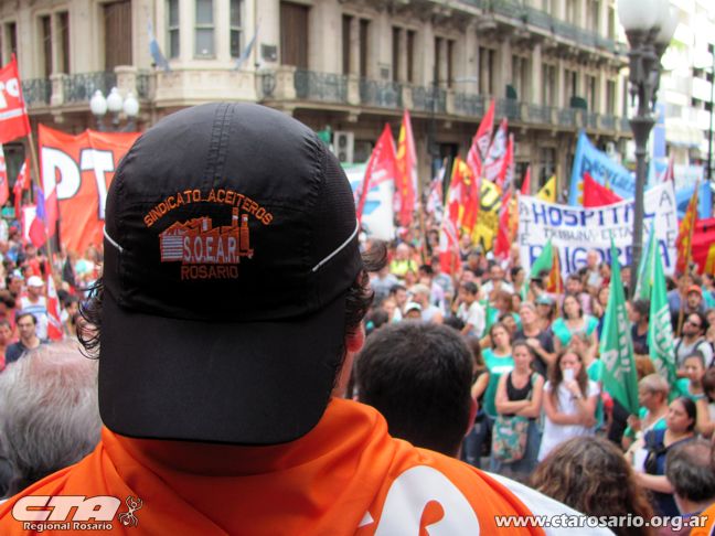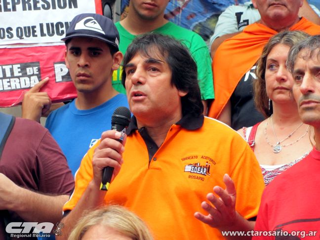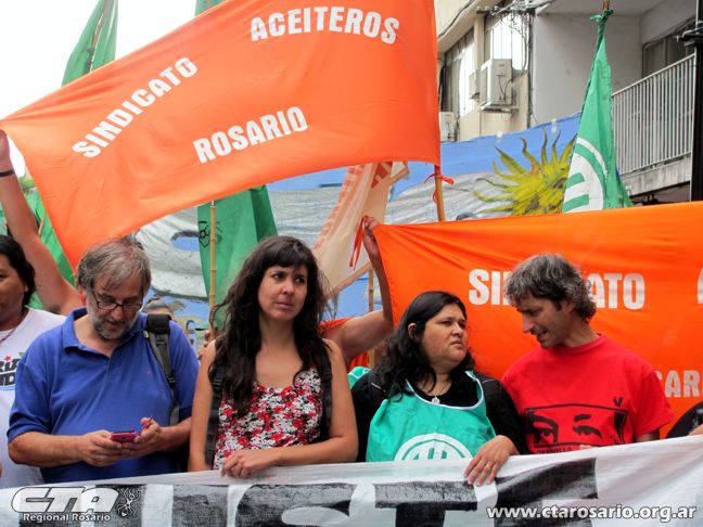 Aceiteros de Rosario, cuyo Secretario de Actas, Daniel Coca expresó: “participamos para acompañar a la gente por los problemas que se vienen suscitando, en pedido de un bono que debe ser extensivo para toda la población. Si bien nosotros podemos conseguir bono, aunque los aceiteros aún no lo cerramos este año, creemos que debe ser para todos”.