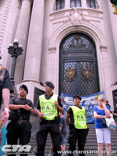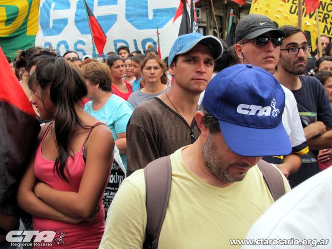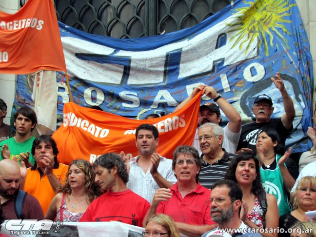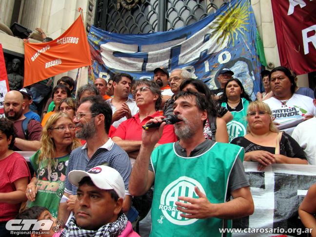 “La posición de nuestra Central es totalmente unitaria. Acá el dato de la realidad es que liberaron el cepo para que sectores que tienen muchas menos necesidades que nuestro pueblo, sigan haciendo negocios. Ahora le pusieron cepo a los salarios y los planes sociales. Es una vergüenza que tiendan a favorecer a los sectores más concentrados. Planteamos una recomposición y aumento salarial de emergencia para los trabajadores de la provincia, municipalidad y nación del sector público y privado. Esto tiene que servir de puente para la discusión paritaria del año que viene”, planteó el Secretario General de la CTA Autónoma y Amsafé Rosario, Gustavo Terés. El dirigente docente recordó que en los últimos dos meses hubo una inflación del 8% con productos de la canasta básica que aumentaron hasta un 20%.