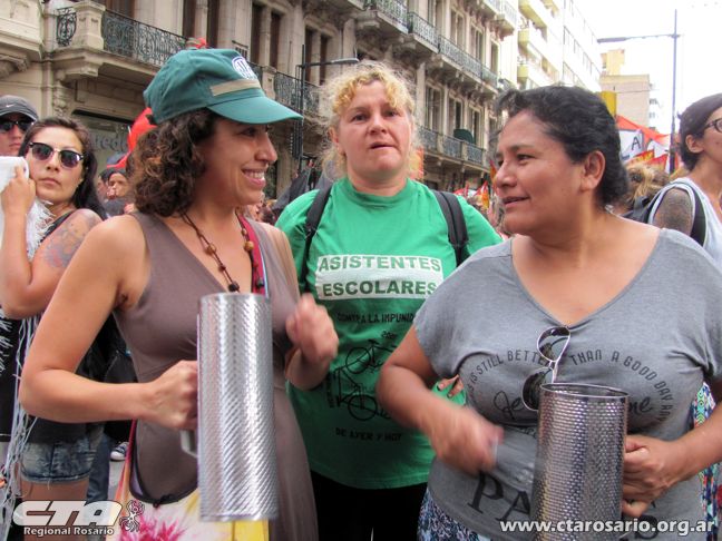 Daz insistió en la necesidad que se garantice el salario mínimo vital y móvil que establece la Constitución Nacional (Artículo 14bis) porque “fortalece la democracia”, y de no ser así aseguró que “estaremos en la calle ahora y todas las veces necesarias”. “Liberan retenciones, el cepo y dejan para lo último la que es la agenda principal: el salario y las condiciones laborales. Si nos devalúan un 40% no podemos tener una paritaria por año”, aseguró. Respecto al pedido de bono de fin de año se apuró a aclarar que no se contrapone al salario digno, al doble aguinaldo, a la reapertura de las paritarias urgente. “Queremos todo, porque nos falta mucho”, resumió. Otro de los sectores gremiales que se sumó a la movida fue el Sindicato de