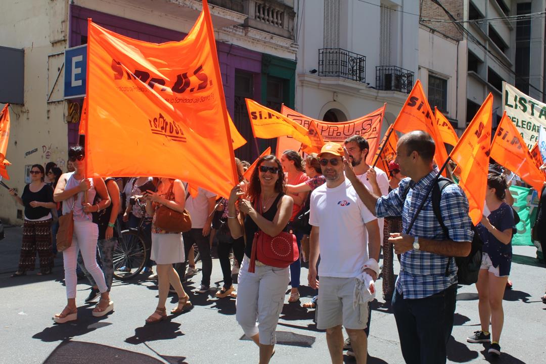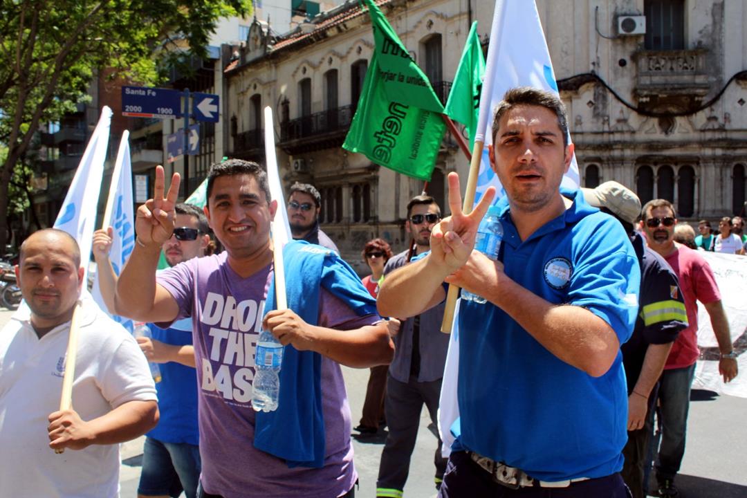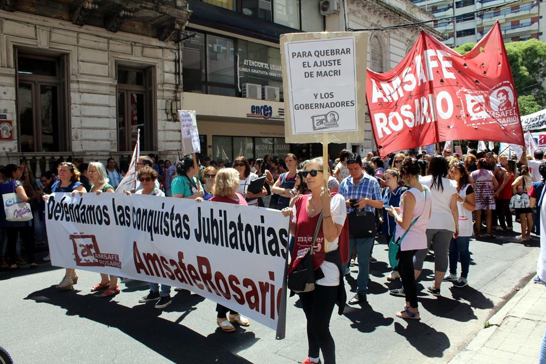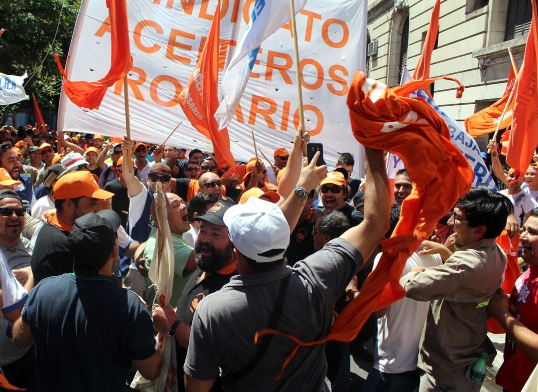 En la larga lista de sindicatos presentes este mediodía estuvieron ATE, COAD, Amsafe Rosario, Siprus, SOEAR-FTCIODyARA, Jaboneros de Rosario y Villa Gobernador Gálvez, Obras Sanitarias, Mesa Coordinadora de Jubilados y Pensionados, comisiones internas del Químicos y Afines de San Lorenzo, Acindar Rosario y Villa Constitución, Tenaris, Laminados Industriales, La Virginia y Jubilados de Empleados de Comercio.