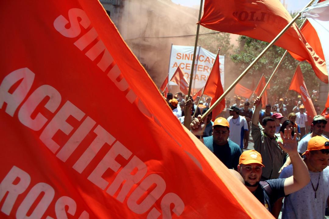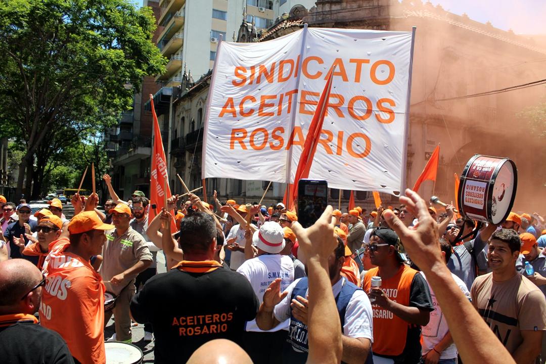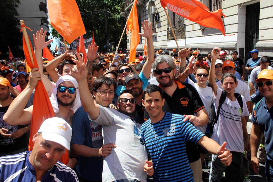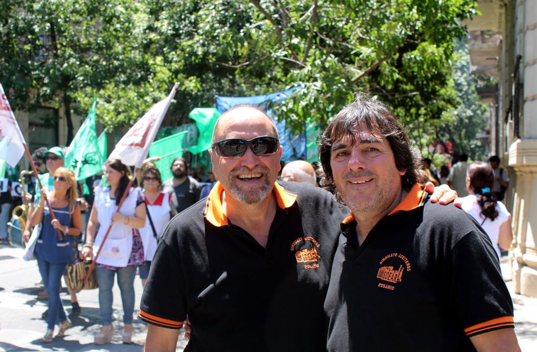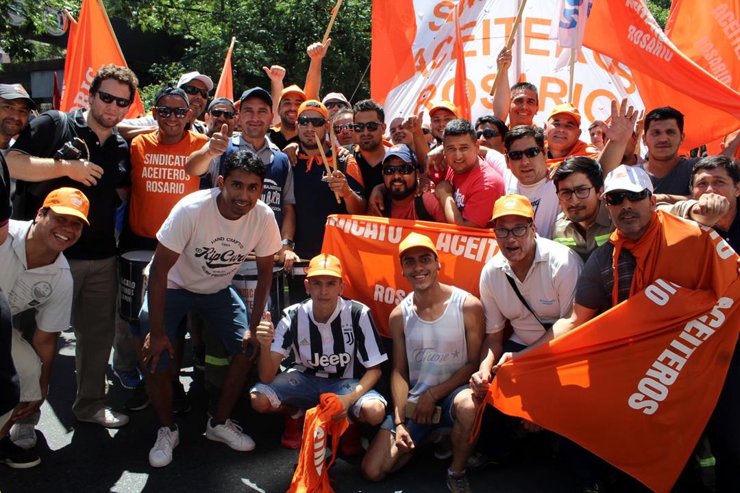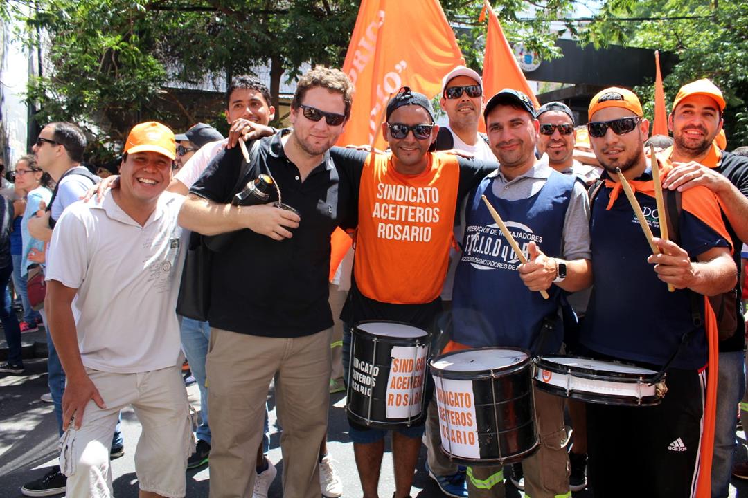 Adrián Dávalos, Secretario General del Sindicato de Obreros y Empleados Aceiteros de Rosario y referente de la Federación Aceitera llegó con alrededor de 800 aceiteros embanderados en naranja que no dejaron de agitar la convocatoria. “Es un orgullo, es una fiesta esto, los aceiteros demostramos que nos enojamos pero estamos de fiesta y vamos a seguir dando pelea. Hay un paro de 24 horas de la Federación Aceitera y se están movilizando en todos los lugares del país contra el ajuste de este gobierno que va por todo, contra los bolsillos de todos los trabajadores a favor de los ricos”, aseguró. Los aceiteros sumaron además su denuncia por la falta de certificación de autoridades del sindicato y la federación, que dificulta lo relativo a la obra social y las prestaciones de salud, además de resultar una actitud injustificable por parte del Ministerio de Trabajo de la Nación ante procesos electorales con lista única y sin impugnaciones.