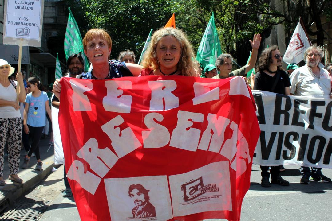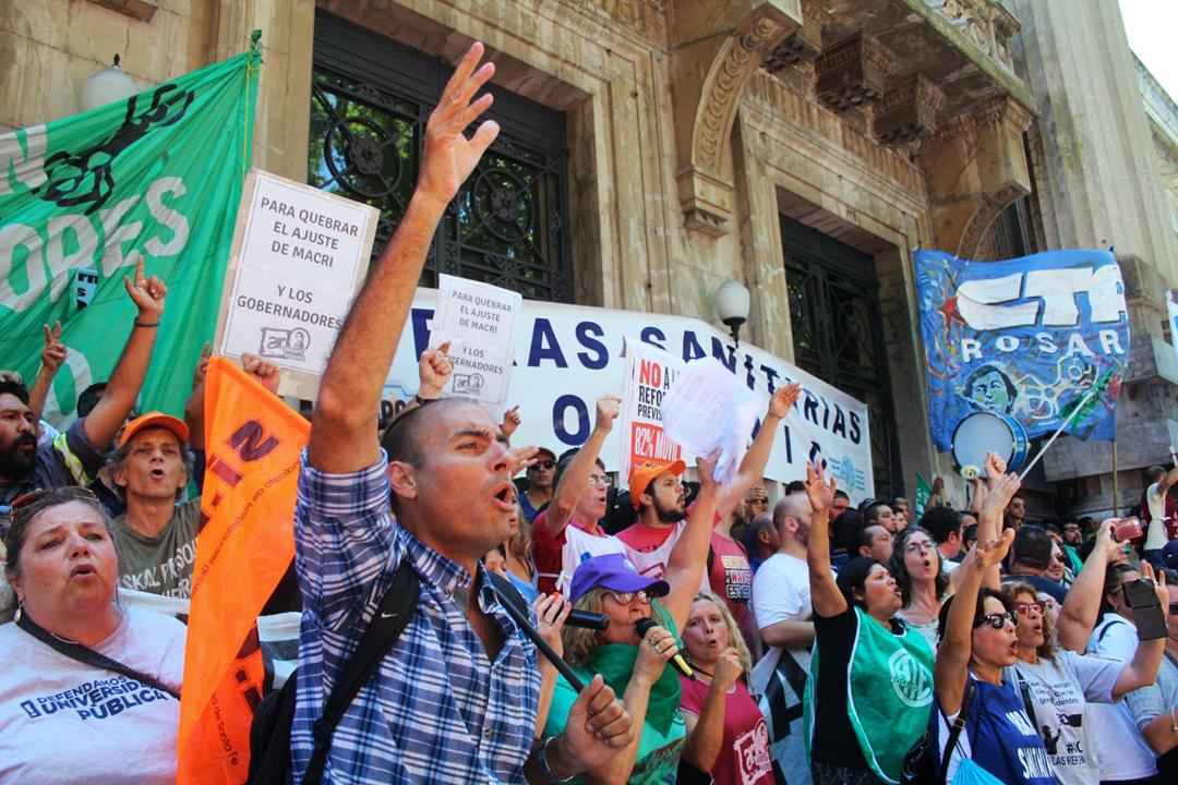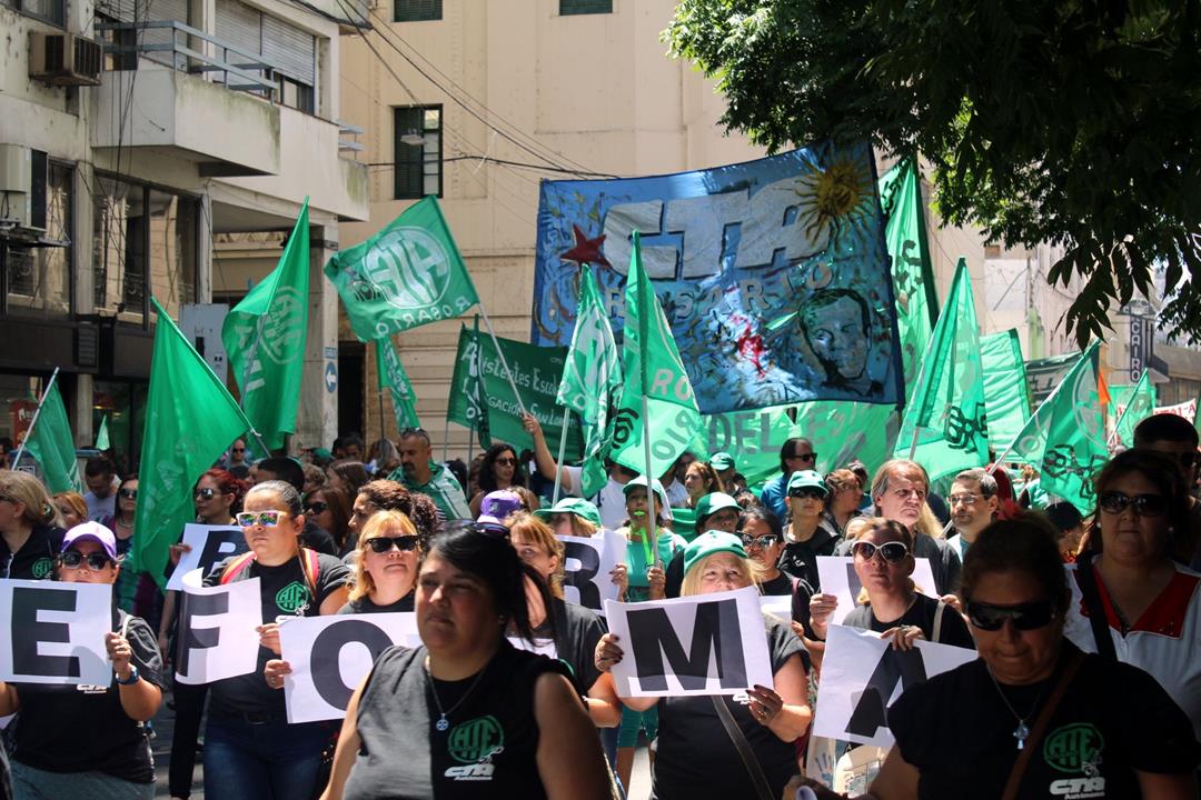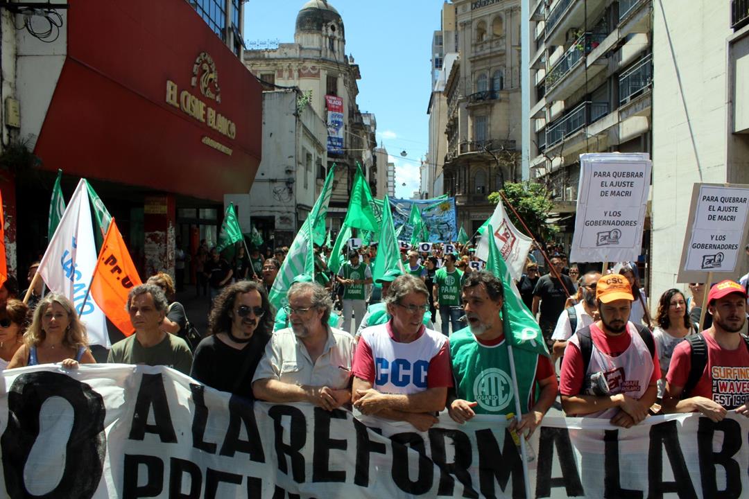 “Esta movilización demuestra que en Rosario hay un movimiento obrero que construye unidad no en las palabras sino en la práctica, que construye rebeldía que impugna una reforma regresiva que atentará contra los derechos del pueblo argentino”, expresó Gustavo Terés, Secretario General de la CTAA Rosario y Amsafe local. Denunció además la “actitud fraudulenta del gobierno porque nada de esto se discutió antes de las elecciones” y advirtió a los legisladores en cuyas manos quedará aprobar o no las reformas, “que no violen los mandatos populares, que no queden en la triste historia de ser los que llevaron los derechos laborales al siglo pasado”.