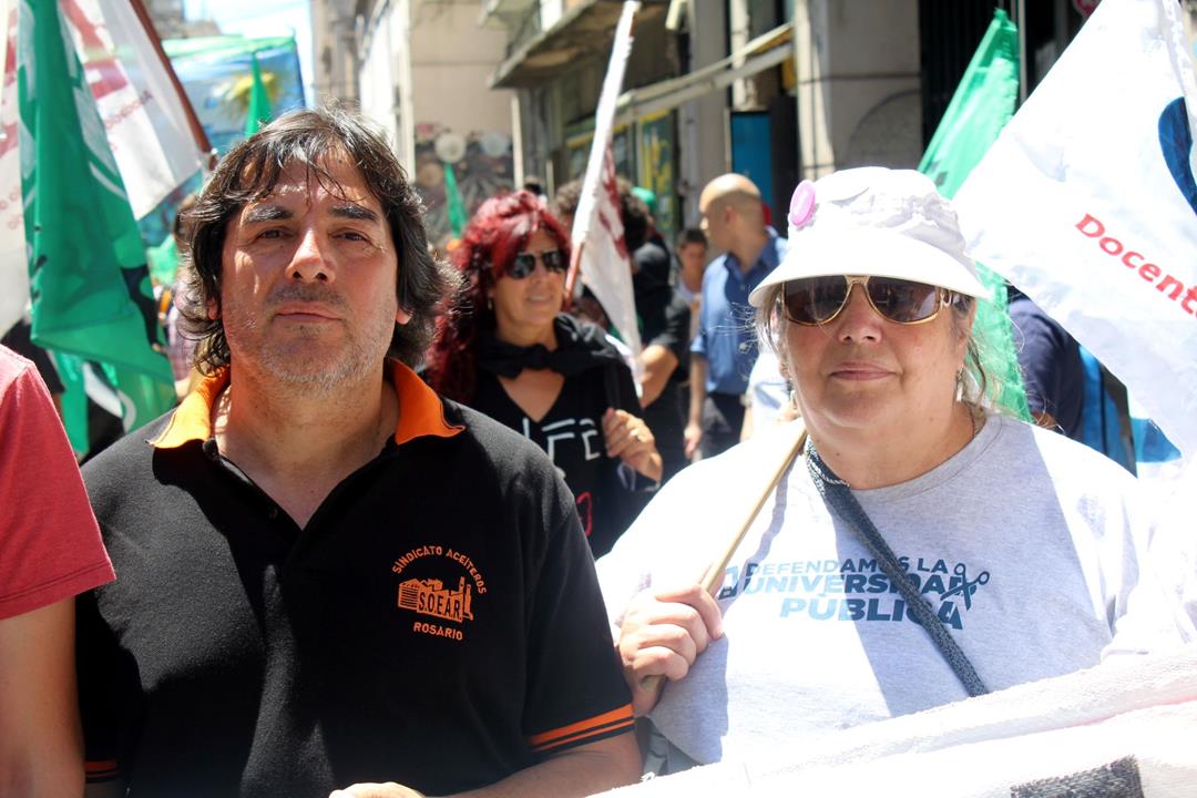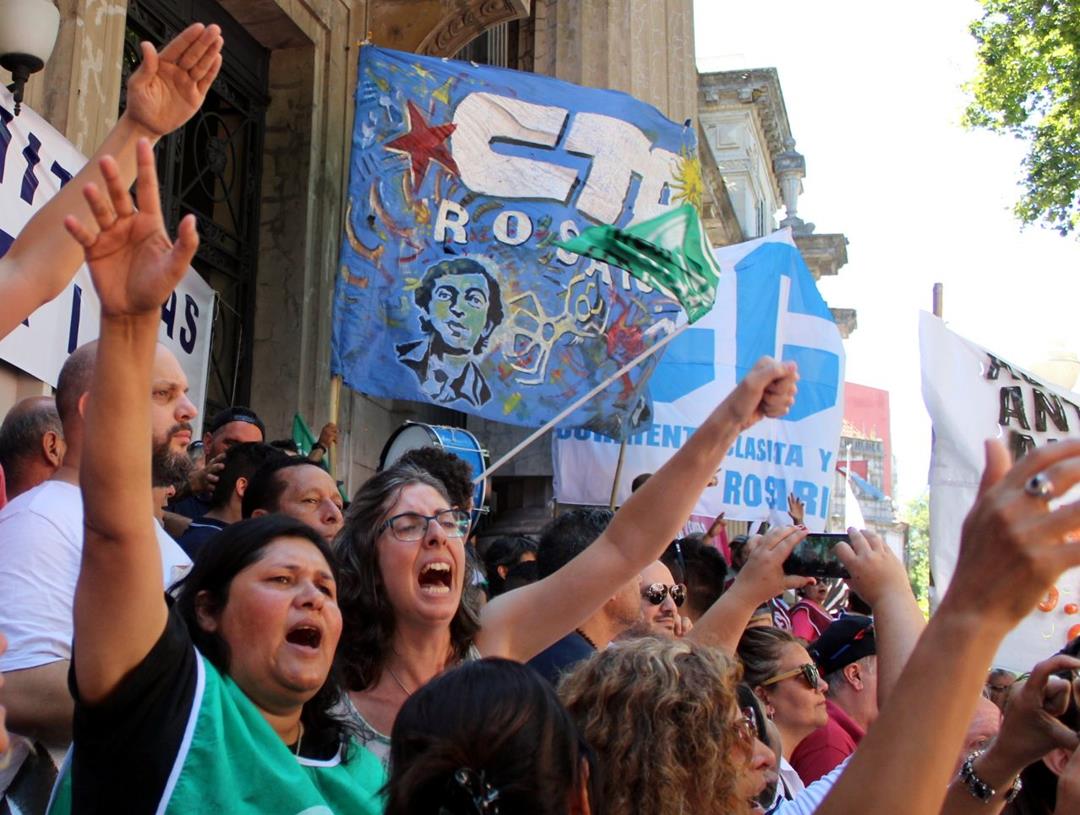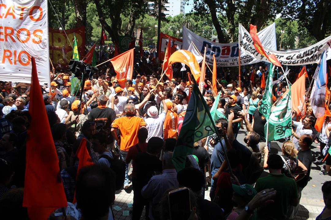 La jornada nacional de lucha de la CTAA y el paro nacional de gremios como ATE, Fesprosa y Aceiteros sin dudas quedarán en la historia de esta Rosario rebelde que se levanta contra el ajuste y construye la resistencia en las calles. La lista de sindicatos presentes fue extensa y marcó un camino de unidad que se consolida: estatales, docentes públicos provinciales y universitarios nacionales, profesionales de la salud, aceiteros, químicos, jaboneros, metalúrgicos, de obras sanitarias, de la alimentación, jubilados y jubiladas. Con una profunda mística fogoneada por un sol abrasador, los obreros se abrazaron una vez más en la lucha. Fueron cerca de diez cuadras de columnas gremiales, organizaciones sociales y políticas en un clima lleno de emoción y colores.