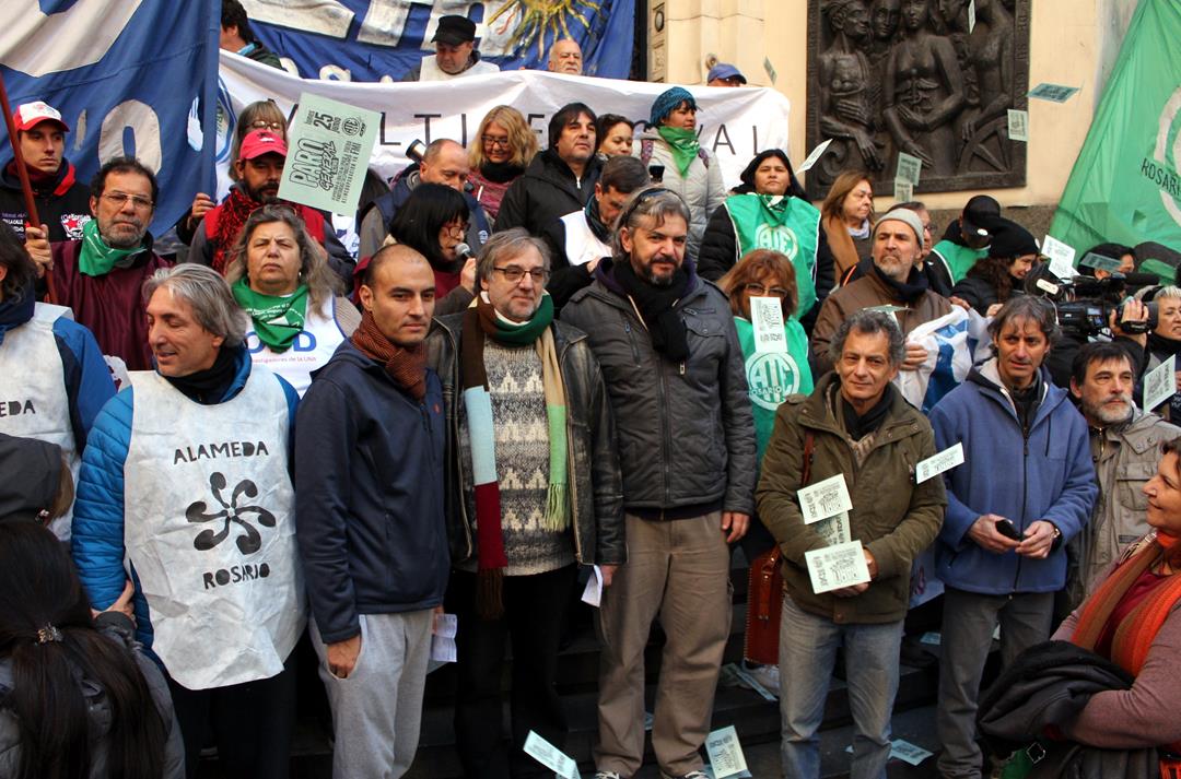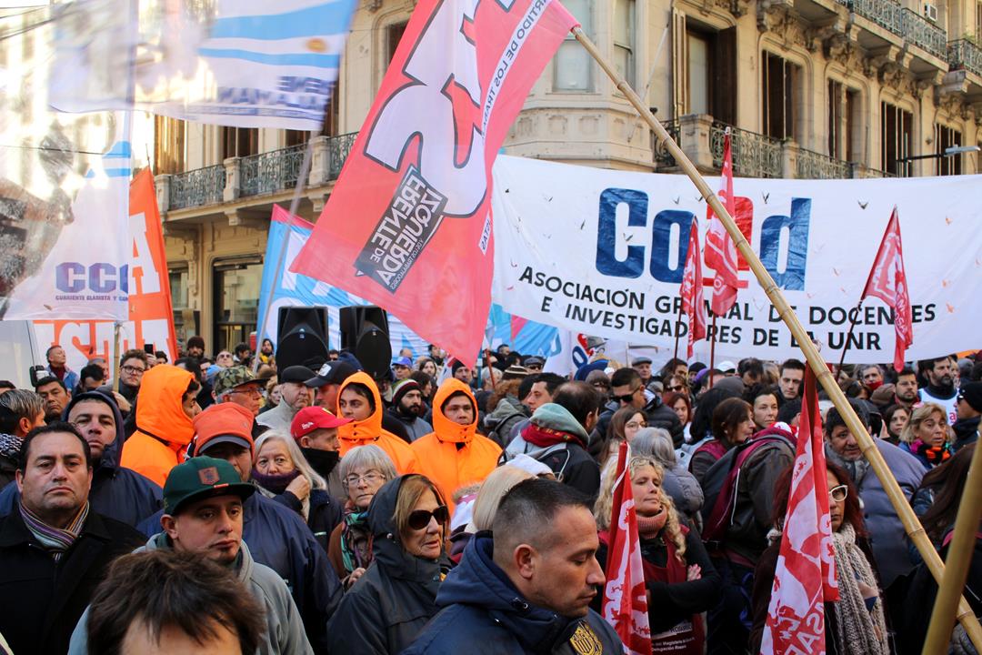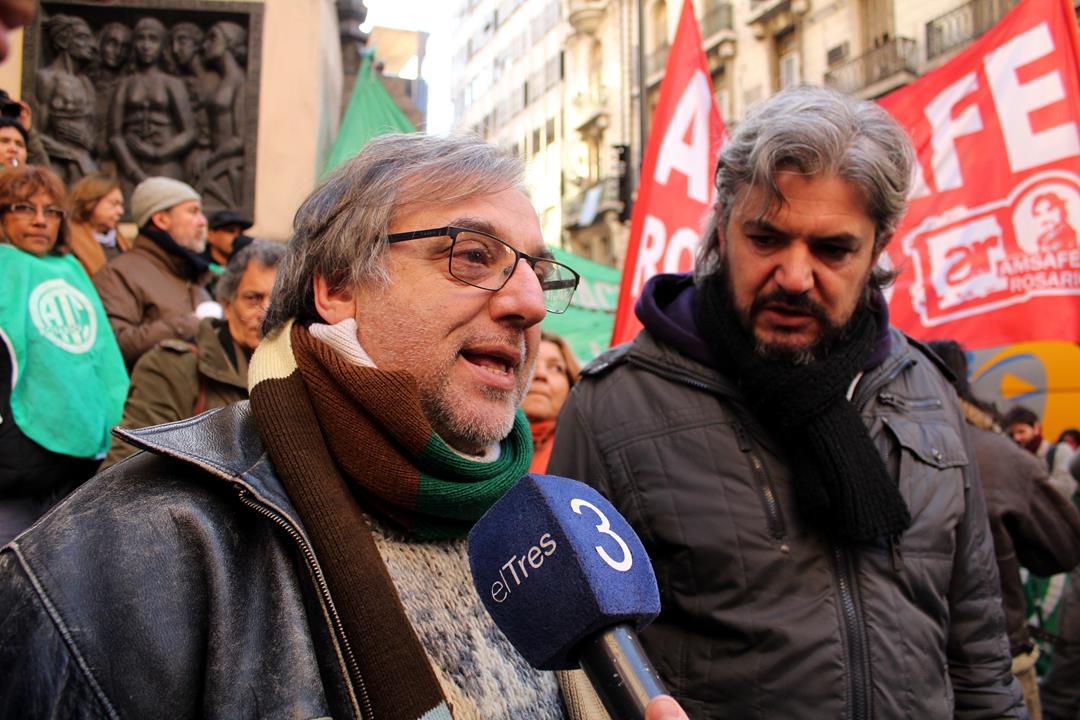 “Rosario tiene de los índices más altos de adhesión a la huelga, el paro es activo por definición de la mayoría de las organizaciones sindicales de salir a las calles, con diversas iniciativas, cortes de, marchas y piquetes de organizaciones sociales”, expresó el Secretario General de la CTAA y Amsafe local, Gustavo Terés. “Las diversas iniciativas muestran la convicción en confrontar con la política del gobierno, que es el programa del Fondo Monetario. Estamos viviendo una brutal transferencia de ingresos desde los bolsillos de los trabajadores hacia el capital concentrado”, denunció.
