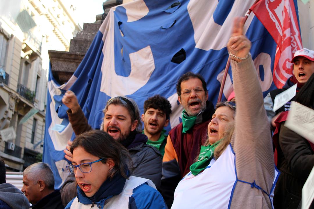 En el acto realizado en las escalinatas de la Bolsa de Comercio también tomaron la palabra referentes de la Multisectorial 21F, del Frente de Organizaciones en Lucha, la Corriente Clasista y Combativa, trabajadoras de la economía popular de CTEP y la Asamblea Permanente por los Derechos Humanos. En los discursos se recordó a Maximiliano Kosteki y Darío Santillán, asesinados en Puente Pueyrredón el 26 de junio de 2002 durante la presidencia de Eduardo Duhalde. En nombre de esos jóvenes, por sus luchas, en honor a su vida, se convocó a seguir construyendo el camino de la unidad de acción, para que el pueblo movilizado con una esperanza activa, pueda sostener los derechos conquistados, recuperar los que le han sido arrebatados y construir los que faltan.