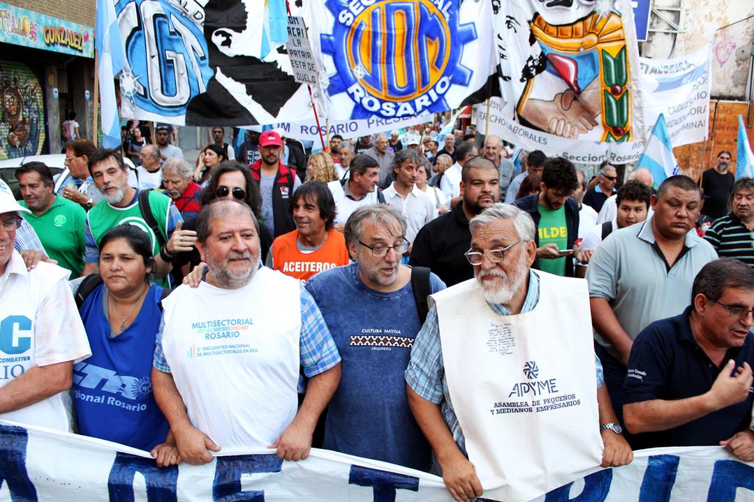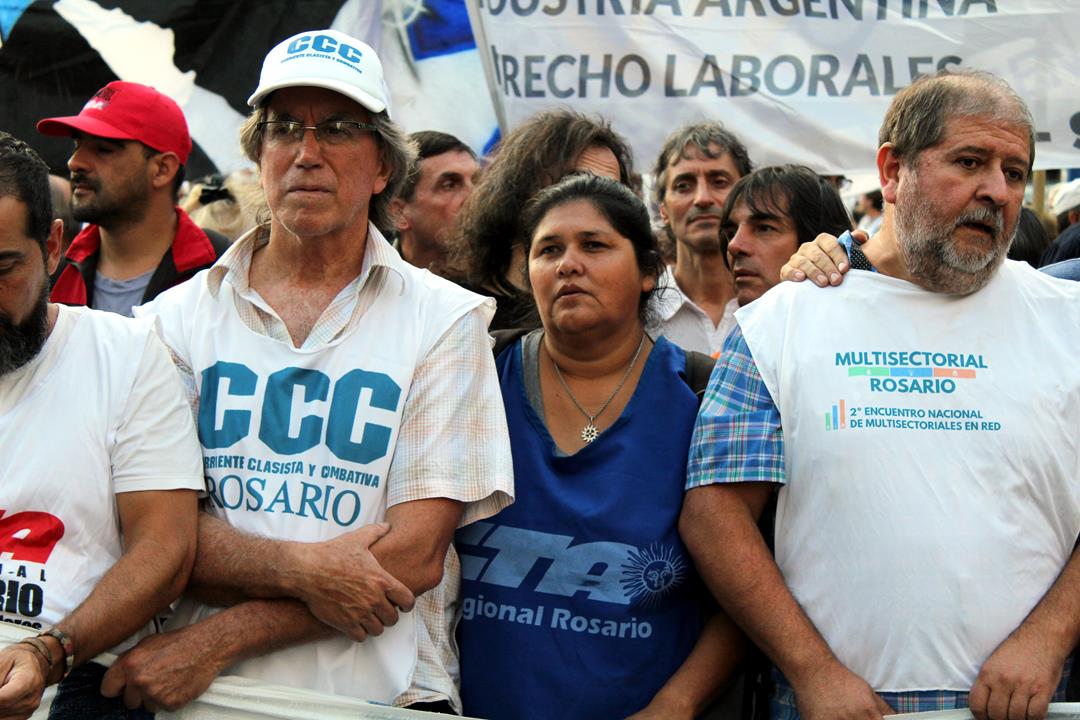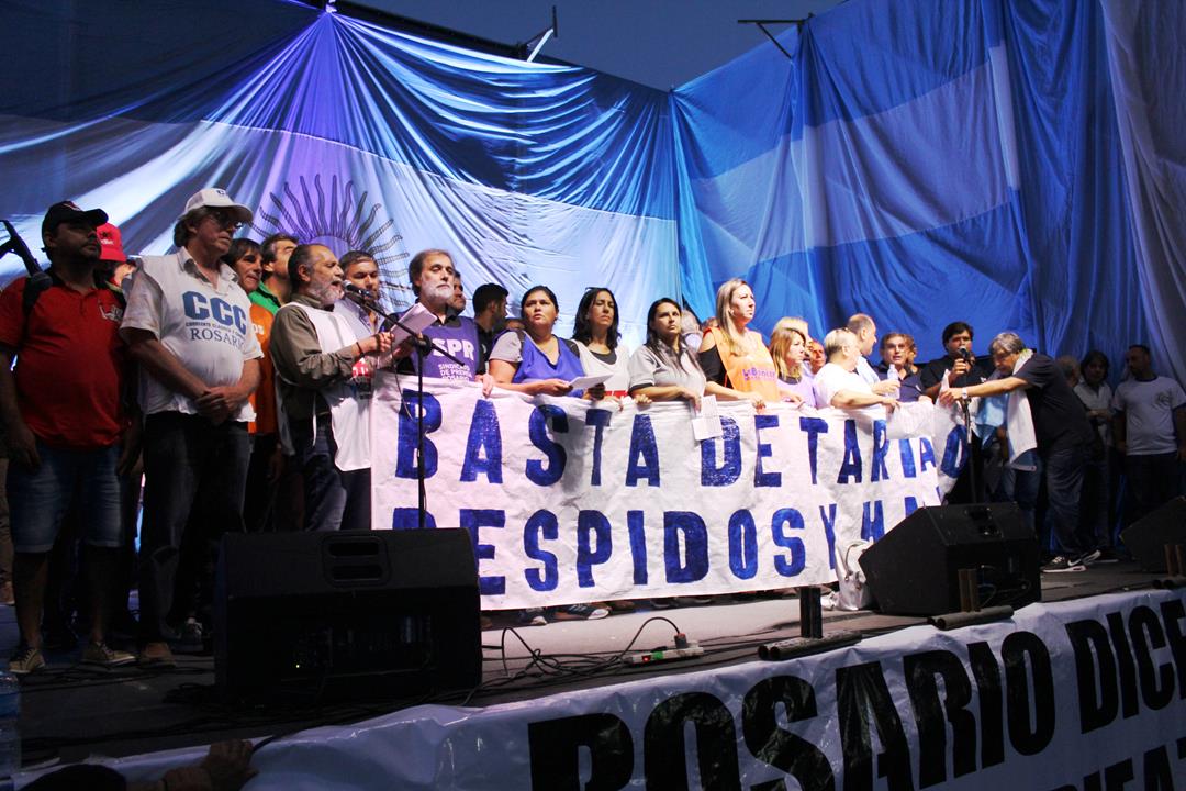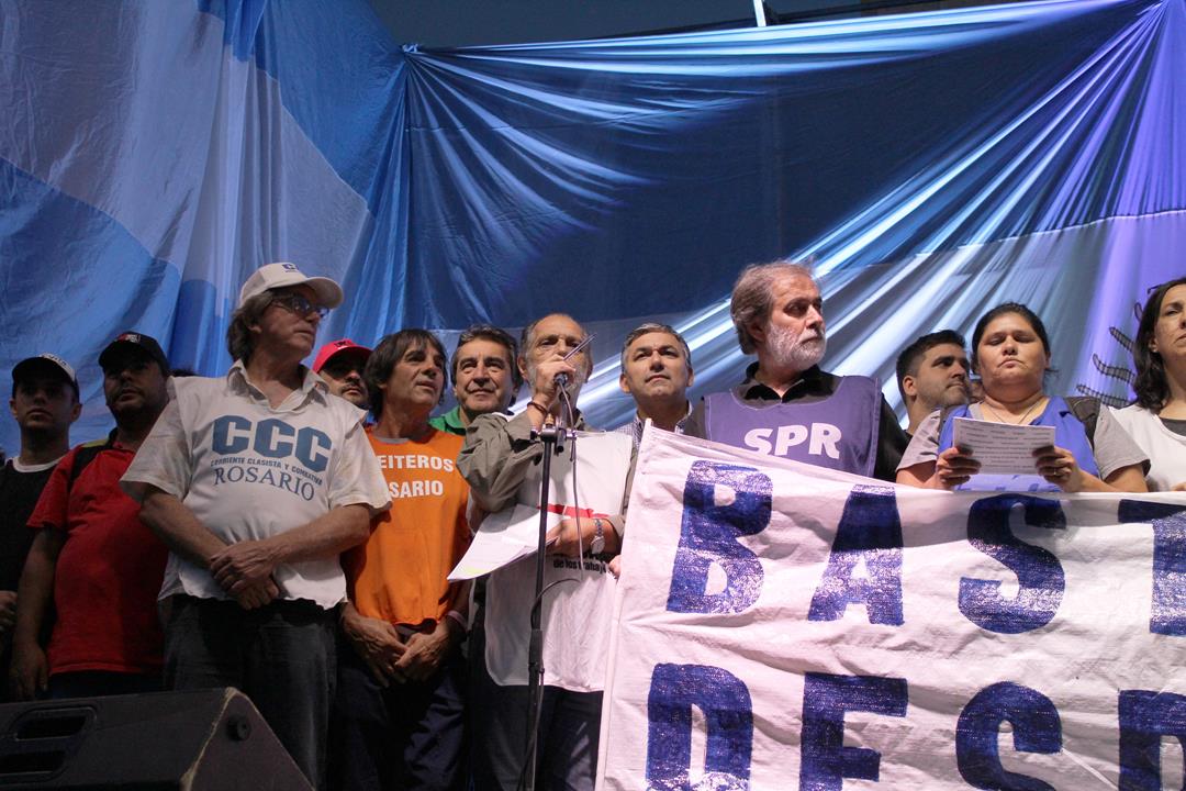 El Secretario General de la CTA Autónoma Regional Rosario, Gustavo Terés recordó que “este plan de lucha empezó en enero con la marcha contra los tarifazos y siguió con las enormes movilizaciones de movimientos sociales y a nivel regional los reclamos de los estatales. Esta multisectorial tiene que tener la virtud y la seña de identidad que no tiene dueño y que las organizaciones sindicales somos en último caso el canal para abrir la movilización. Los planes de lucha en este país para parar el ajuste siempre lo han protagonizado los trabajadores y el pueblo en nuestro país. Estamos homenajeando a la bandera dándole vida a lo mejor de la tradición de nuestro pueblo y nuestros próceres”.